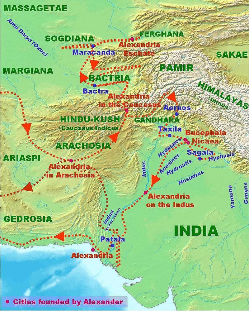 알렉산드로스의 인도 원정길(출처: VOICE OF INDIA 블로그)
