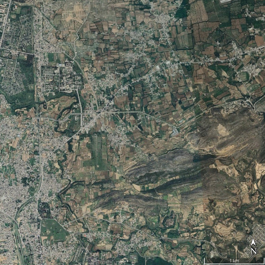 탁실라 위성지도와 고대 도시들의 위치