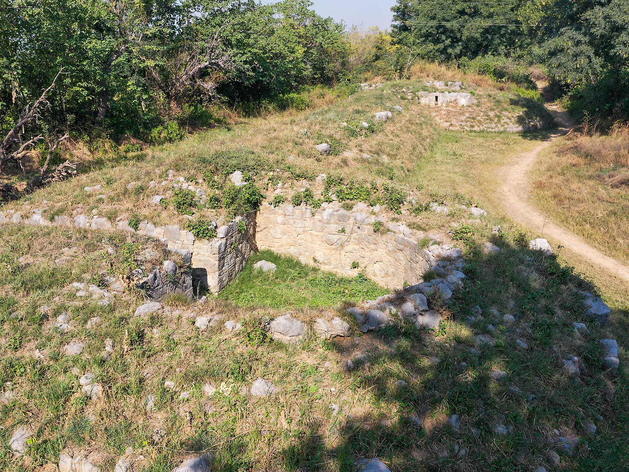 (좌) 둥그렇게 마감한 시르숙의 성벽 상부, (우) 부채꼴 모양이 명확한 시르숙의 치