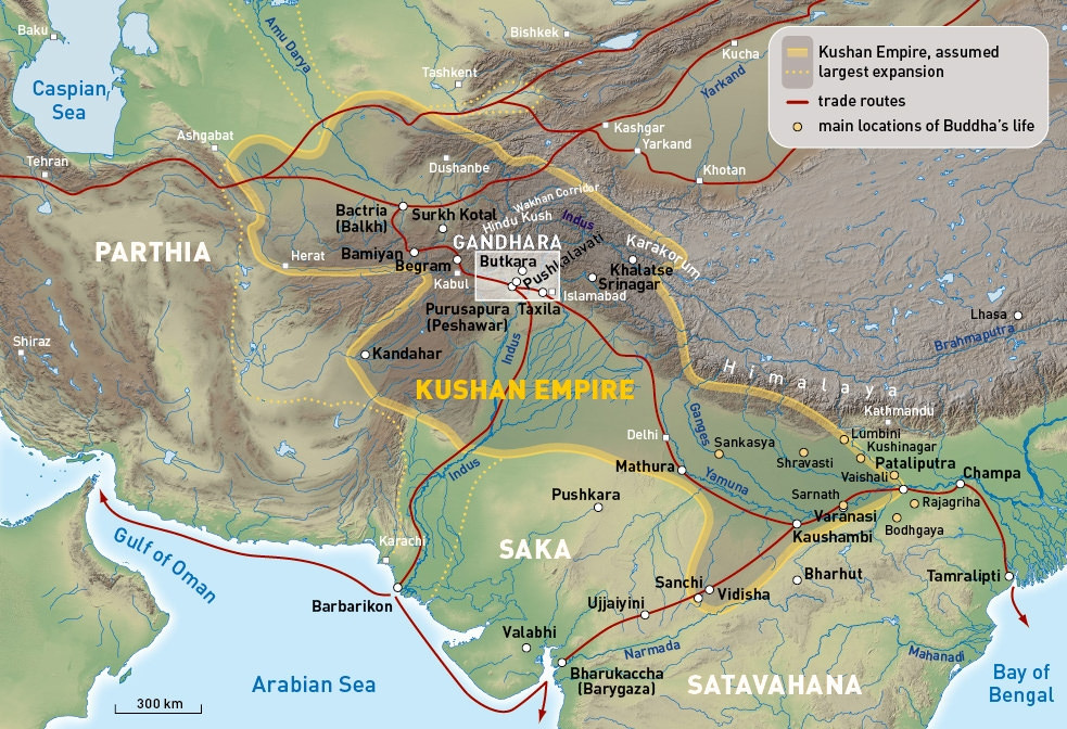1~2세기의 쿠샨왕국 지도 (출처: Asia Society)