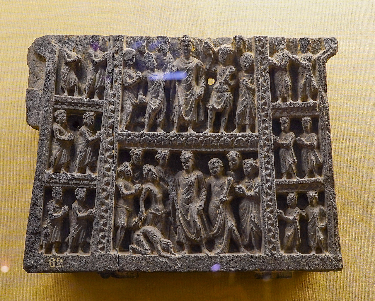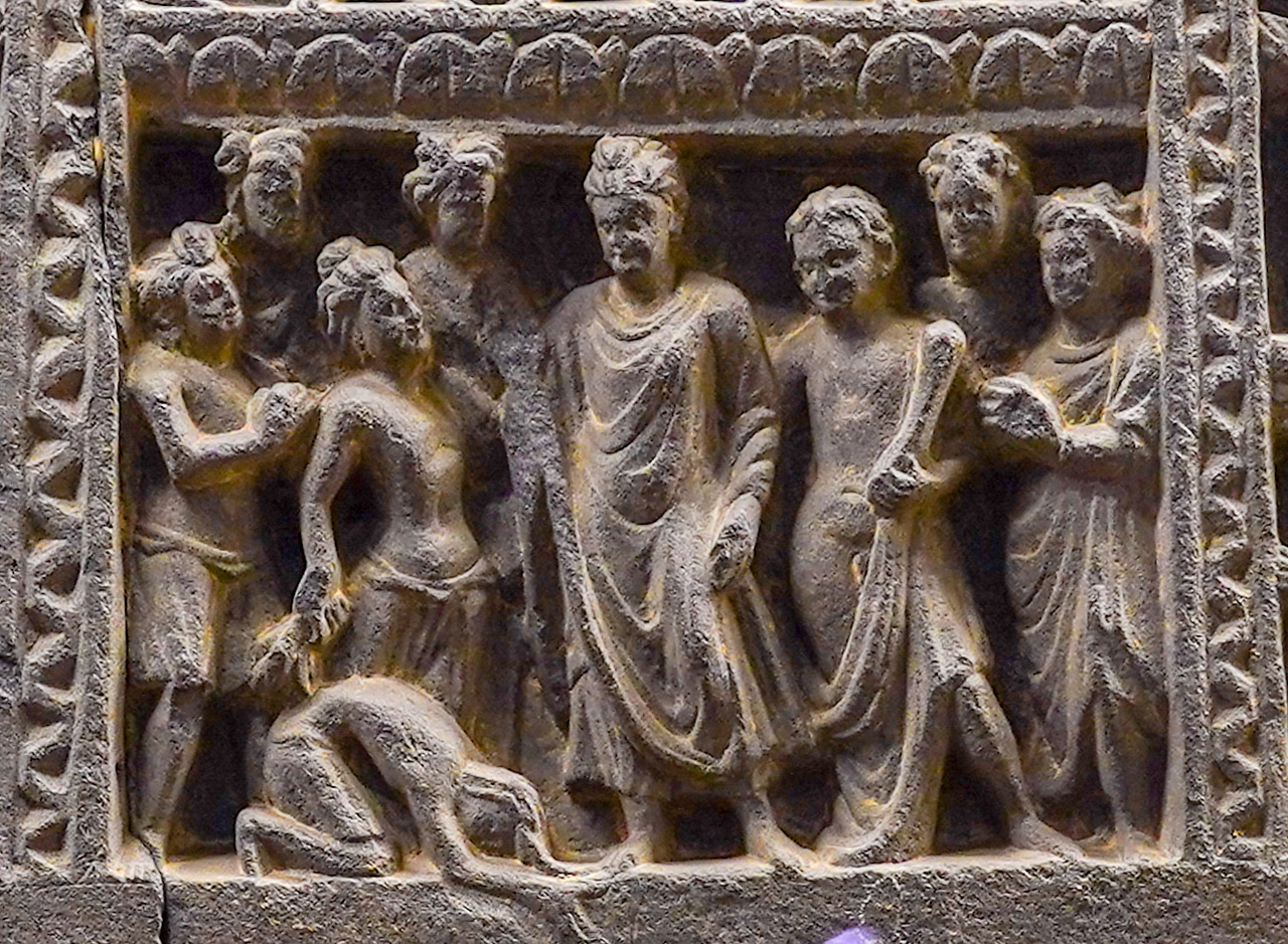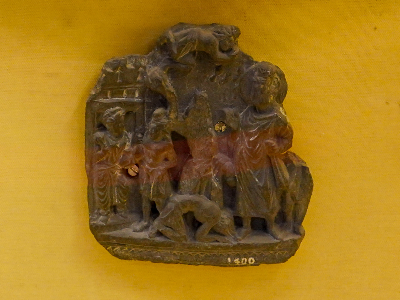 디판칼라 자타카 장면이 조각된 부조벽화(라호르 박물관)