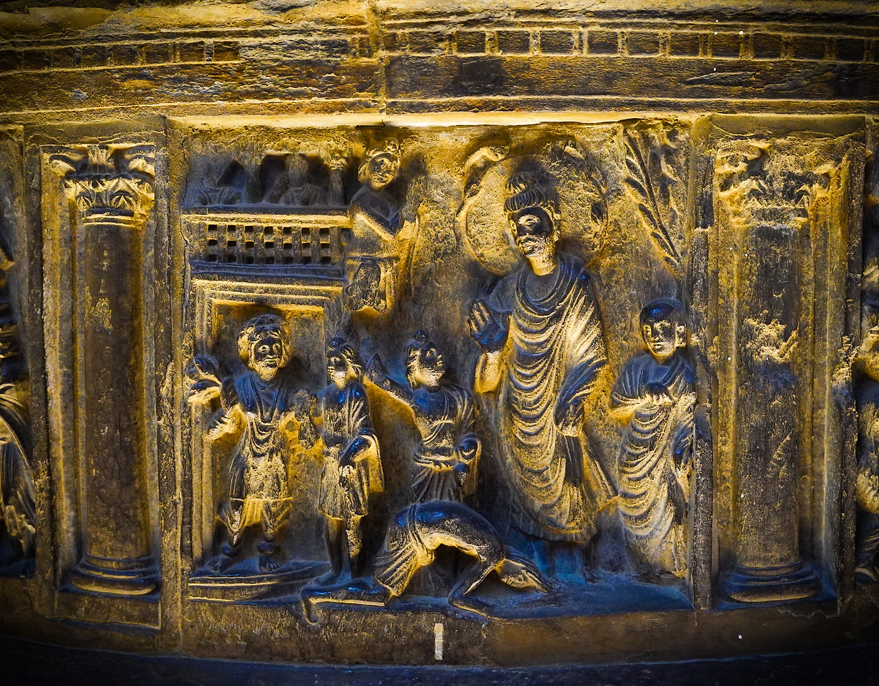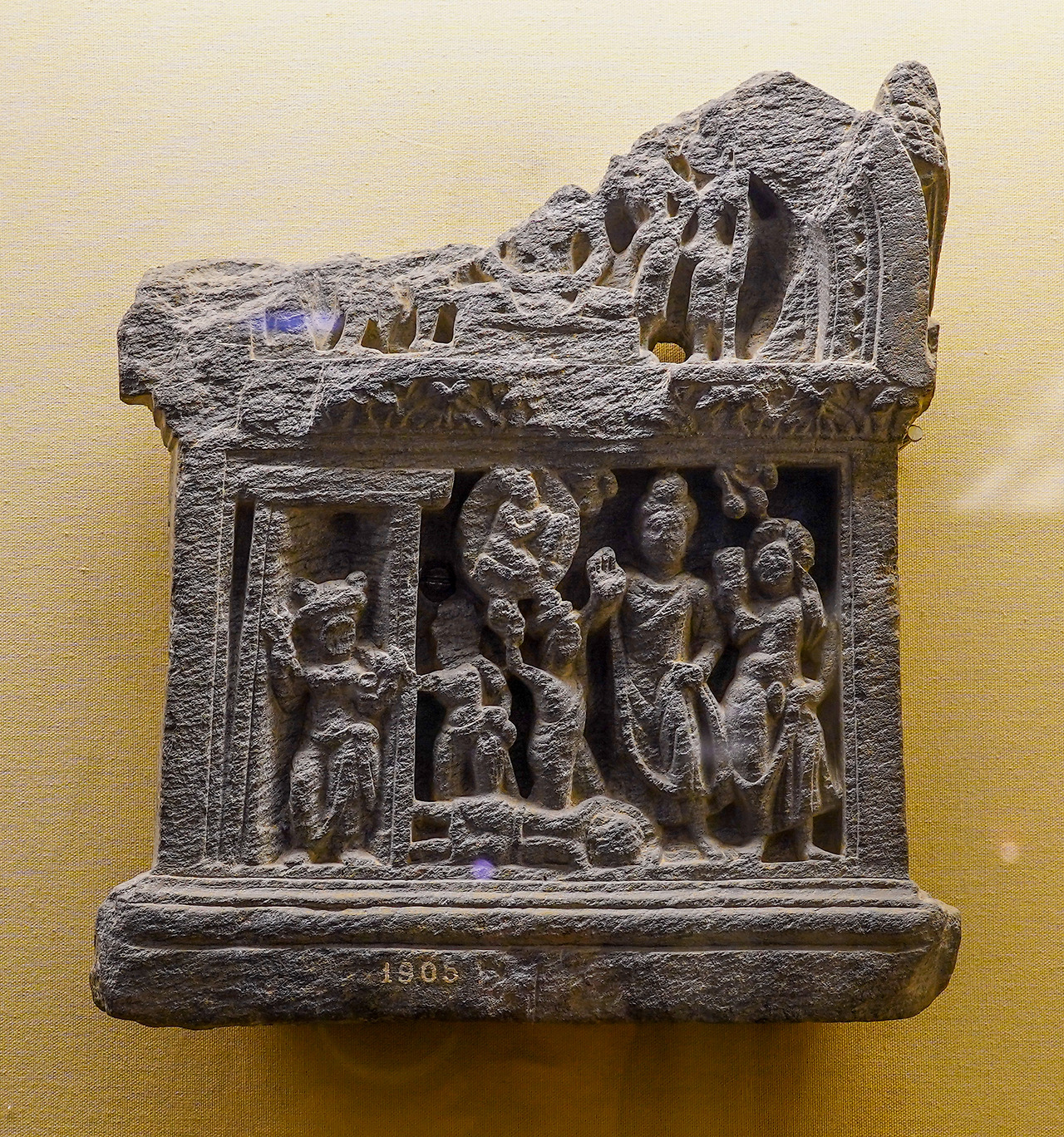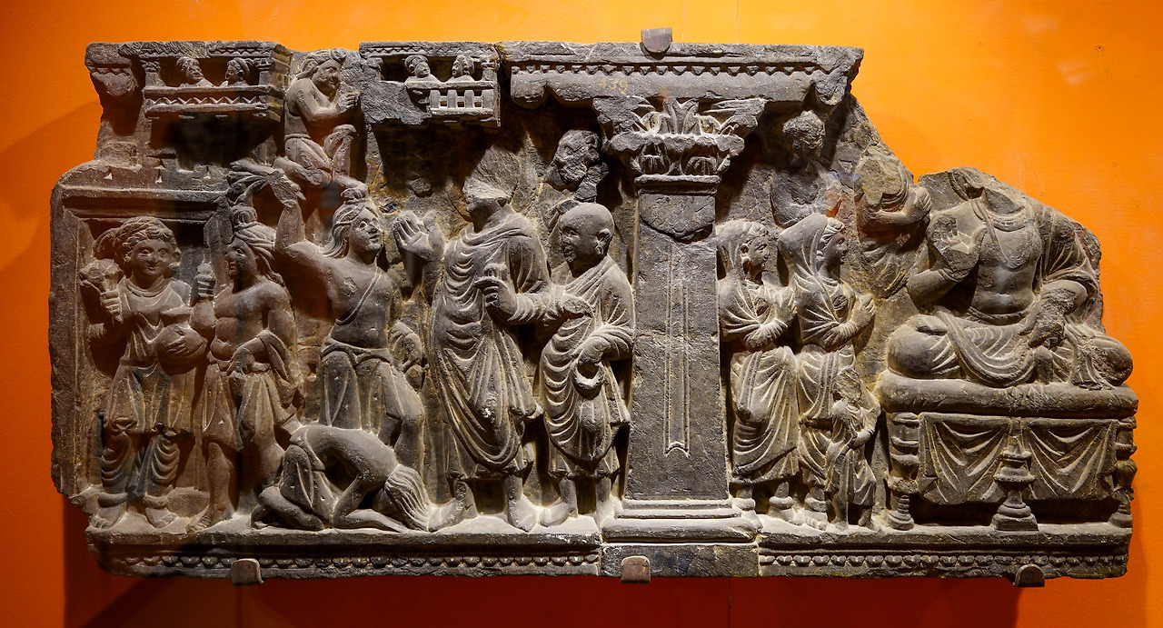 디판칼라 자타카 장면이 조각된 부조벽화(라호르 박물관)