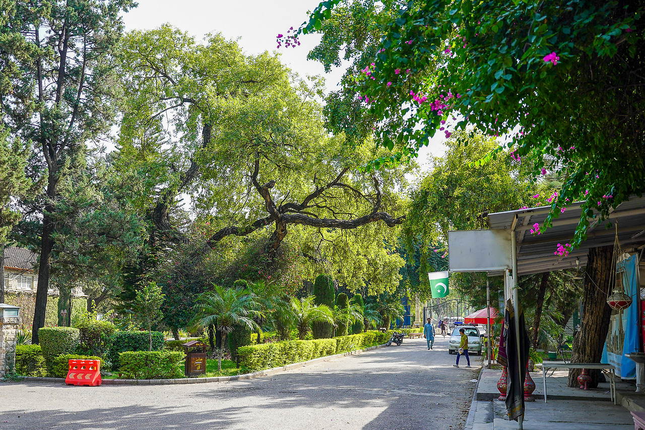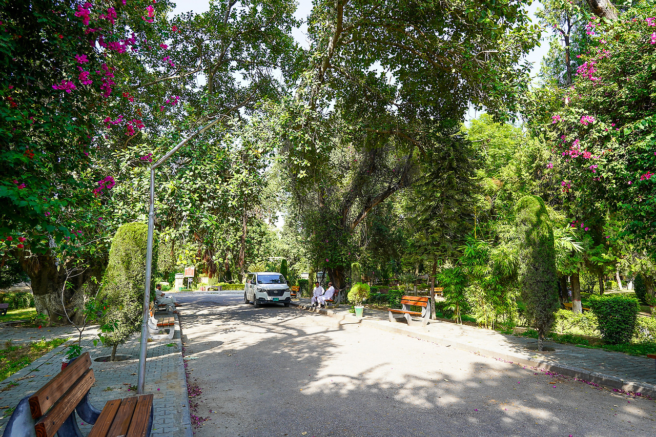 오래된 거목들과 꽃들이 가득한 탁실라 박물관 정원