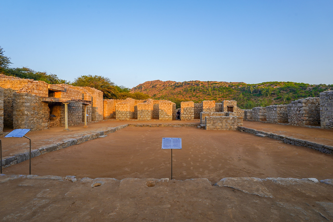 대형 스투파가 있는 공간에서 동쪽으로 이어진 곳으로 나가면 승방 공간이 나온다. 바깥으로 내려다 보이는 탁실라의 풍경이나 주변으로 둘러싼 산세가 볼 만하다. 승방은 간다라에서 볼 수 있는 전형적인 형태로, 중앙 연못, 승방, 그리고 바깥쪽으로 식당과 회의 공간이 있다. 앞서 본 스투파 쪽이 종교적 공간이라면 이 구역은 생활공간이다.