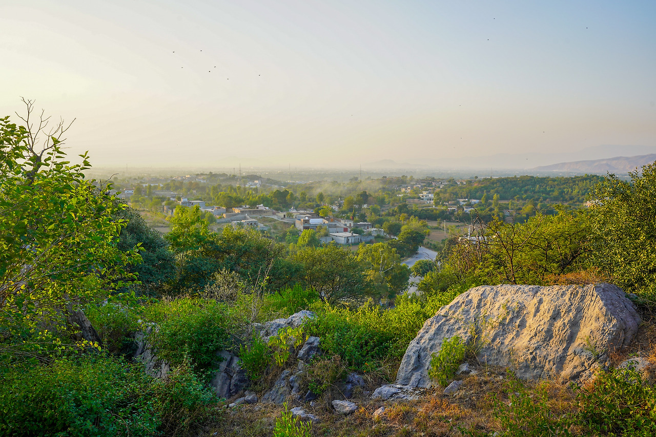자울리안 유적으로 올라가는 길과 유적에서 본 탁실라를 내려다 본 풍경