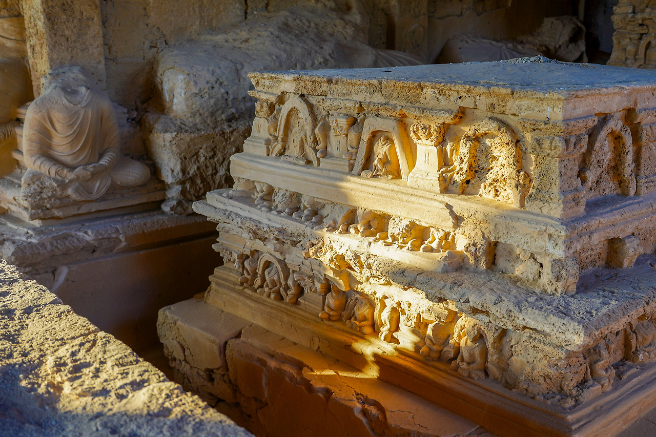 회반죽 조각이 아름다운 자울리안의 봉헌 스투파