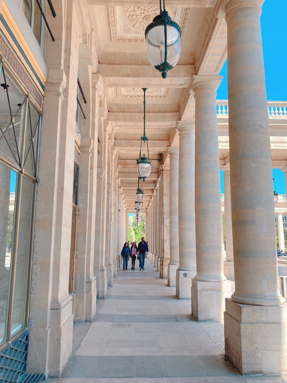 직사각형 팔레 루아얄 정원을 둘러싸고 있는 회랑은 곧게 뻗은 자세만큼 시원한 그늘을 제공해 준다.