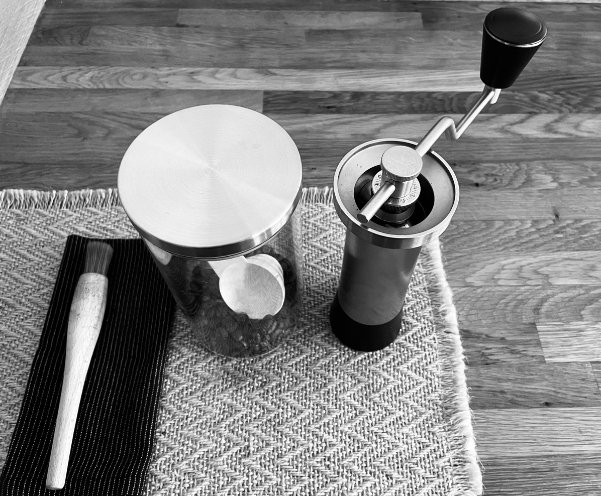 인센스가 한 줌의 재로 바뀌면 주방과 거실 창문을 모두 활짝 열어 집안과 밖의 공기가 서로 통할 수 있도록 잠시 그대로 둔다. 그리곤 커피를 내린다. 남편과 내가 마실 딱 두 잔만큼의 원두를 수동 블라인더에 넣어 천천히 갈아준다. 이번에 주문한 원두가 상당히 부드러워 남편의 얄팍한 근육에 의지하지 않아도 충분하다. 내가 직접 원두를 갈고 내린 커피는 특별하다. 또르륵 또르륵 방울방울 내려지는 커피 소리도 청명하다.