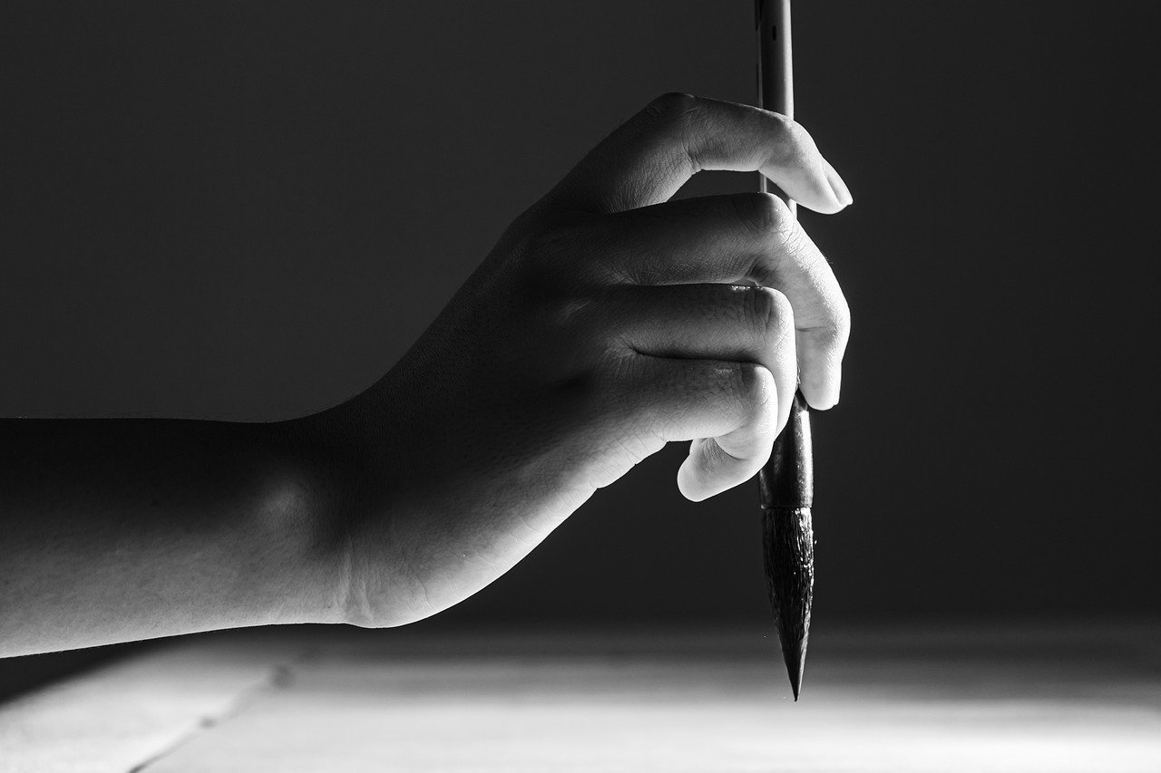 다짜고짜 붓펜을 손에 쥐어줍니다.