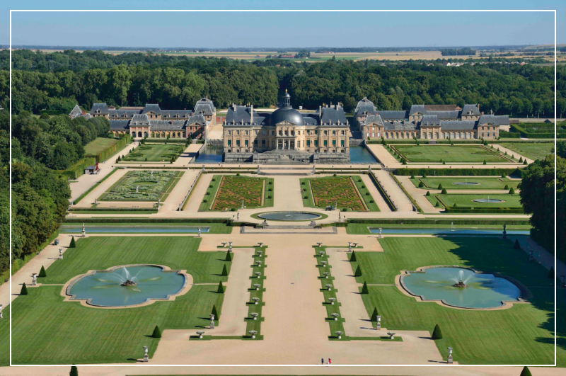 정원 가운데에 성과 평행한 방식으로 대운하가 있는데, 성과 가까운 앞 쪽엔 아기자기하게 꾸며져 있고 먼 쪽은 언덕으로 감싸져 있다. 운하를 지나 반대쪽은 낮은 언덕에 감싸져 있다. 분수대에서 왕관 모양으로 물이 솟아오르면 정말 앙증맞고 사랑스럽다. 성 내부에는 푸케의 갤러리, 건축가들의 갤러리, 뮤즈의 방, 게임의 방, 헤라클레스의 방, 그랑살롱, 도서관 등 콘셉트가 있는 온갖 방들이 있다. 루이 14세의 방과 서재, 왕의 아들, 손자의 방까지 꾸미고, 왕의 동상이나 초상화도 잊지 않았다. 푸케는 완공을 끝내고 왕과 귀족들을 초대했다. 멋진 음식, 화려한 불꽃놀이, 음악, 미술, 연극 등 온갖 예술의 향연의 자리를 열어 과시했다.