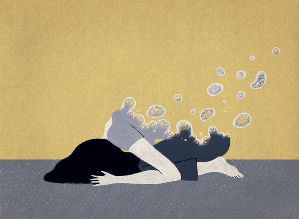 뜨거운 물이 가득한 욕조에 앉아서