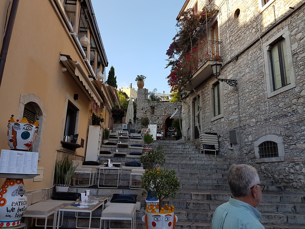 옛 도시의 고풍스런 정문이 보였다. 일명 ‘메시나의 대문’ 이었다 그리고 대문안으로 바로 뻗은 거리의 끝은 ‘카타니아의 대문’이었다. 그게 전부였다. 도시가 아닌 사실 타운 정도의 크기였다. 그것도 산 정상의 이곳 옛 구역은 더 작았다. 그러고보니 시칠리아의 큰 두 도시, '메시나'와 '카타니아'의 중간에 사랑하는 자식같은 타오르미나가 있다는 걸 눈치챘다. 이 메시나의 정문에서 왼쪽으로 돌면 고대 그리스 극장이 아직도 남아 연극과 음악 콘스트를 공연했다. 다시한번 지금 이태리의 시칠리아가 옛날 옛적엔 그리스의 영토였고 그 찬란한 철학과 문화를 고스란히 받았다는 걸 보여줬다.