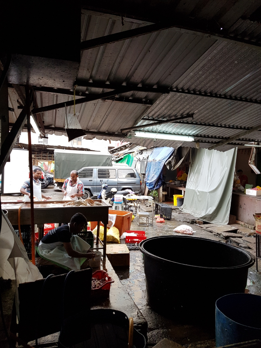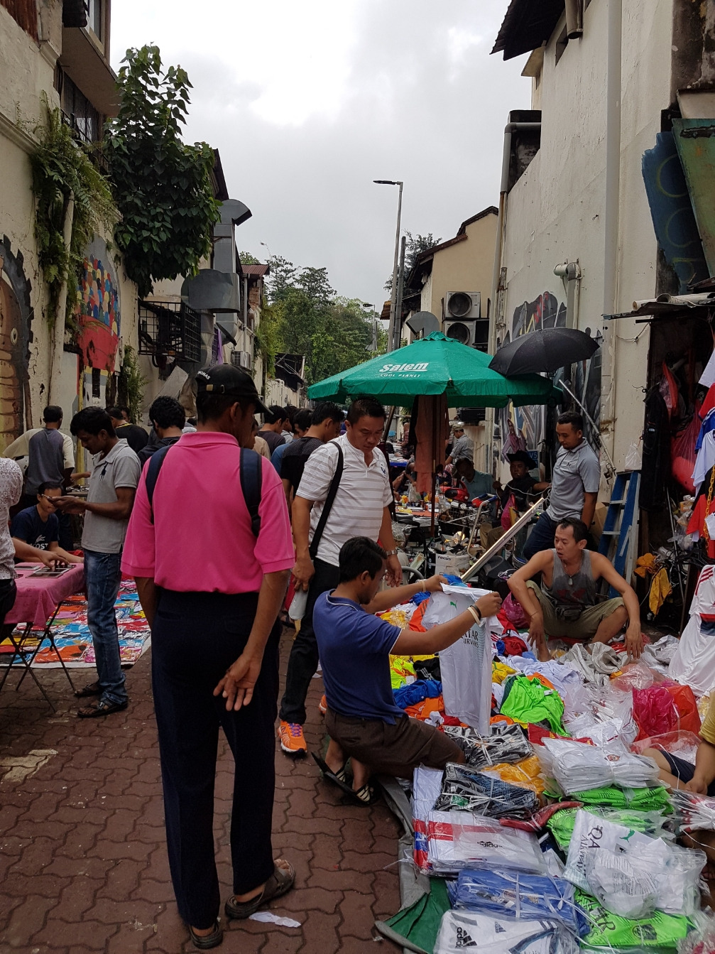 동서남북 네 갈래로 나있는 차이나타운의 중앙에 서서 사방을 둘러보니 중국인들은 별로 없고 다른 아시아 각지에서 온 이민자들이 붐비고 있었다. 복잡한 이곳에서 상술을 익히고 부자가 된 중국인들은 이곳을 떠나 부촌으로 옮기거나 호주나 뉴질랜드 심지어 영국으로 떠났다고 했다. 오른쪽 골목을 뒤집고 들어가자 갑자기 웅성웅성 소리가 크게 들려왔다. 재미있는 구경거리가 있겠구나 짐작했다. 아니나 다를까, 가이드가 한 말대로 거기엔 중국인들은 별로 보이지 않았다. 네팔인, 파키스탄인, 인도네시아인, 인도인 등등... 말레이시아는 우리보다 소득은 낮아도 이런 다민족 사회구성은 우리보다 훨씬 오래부터 있었다. 사실 지금은 더할 것이다. 그래서 말레이시아 관광청의 광고 문구도 ‘진짜 아시아(Truly Asia)’라고 선전했을까? 그러나 여기 대부분의 노점상들은 불법이라고 누군가가 속삭였다. 소득높은 우리보다 외국인들은 더 많았다. 사실 유럽인이나 미국인들도 우리나라보다 훨씬 더 눈에 띄었다. 그 좁은 골목엔 없는게 없었다. 어찌보면 남대문시장 같기도 했다. 대부분 다 노점상들이었다. 혹시 우리나라처럼 ‘자리세’가 있을까 궁금했다. 구식 핸드폰을 모아서 파는 사람들도 있었고 아기들 옷을 파는 노점상도 있었다. 관광객들이 많아 가방을 모아놓고 파는 곳도 보였다. 거의 반정도 노점상은 중고물품 이었다. 오래된 삼성 핸드폰도 있었다. 여기엔 사람과 사람이 부딪혀 제대로 걷기도 힘들었다. 거기에다 온갖 언어들이 난무했다. 여기가 무너진 바벨탑 뒤 생긴 언어의 혼란지로 여겨졌다. 갑자기 이런곳에 많이 잠복해 있는 소매치기가 걱정되어 뒤에 맨 가방을 슬며시 앞으로 옮겼다. 하기야 뒤에 진 가방을 다 뺏기더라도 걱정될건 없었다. 여권과 티켓은 안전하게 코치안에 있었고 지갑에 든 돈도 딱 용돈만큼만 있었다. 다시 가방을 뒤에 매고 다른 골목을 들어섰다. 거기엔 온통 먹자판이었다. 옛 신림동 떡볶기 골목처럼 옹기종기 작은 노점 식당들이 줄지어 있었다. 비가 내려 바닥은 질퍽질퍽했다. 정비되기 전의 자갈치 시장과 같았다. 결코 위생적으로 보이지 않았다. 여기엔 중국인들이 보다 많았다. 물국수가 먹고 싶었지만 아침먹은지 얼마되지 않아 참기로 했다.