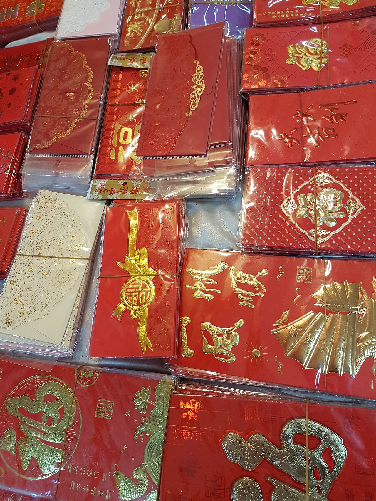 중국 음력설이나 명절엔 '복'자가 또렷이 인쇄된 붉은색 봉투에 돈을 넣어 선물로 준다. 만다린 발음으로 홍바오(hóngbāo) 그리고 복건성 또는 호키엔 발음으로는 앙빠우(âng-pau)로 발음된다고 한다. 또 이 빨간 봉투는 세계 어디에고 차이나타운이 있으면, 그리고 중국인이 살고 있으면 어김없이 볼수 있다. 런던 차이나타운에도, 홍콩에도, 싱가포르에도... 이 붉은색 봉투는 주는 사람도 받는 사람도 모두 '재물'로 번성하라는 의미가 있다고 한다.