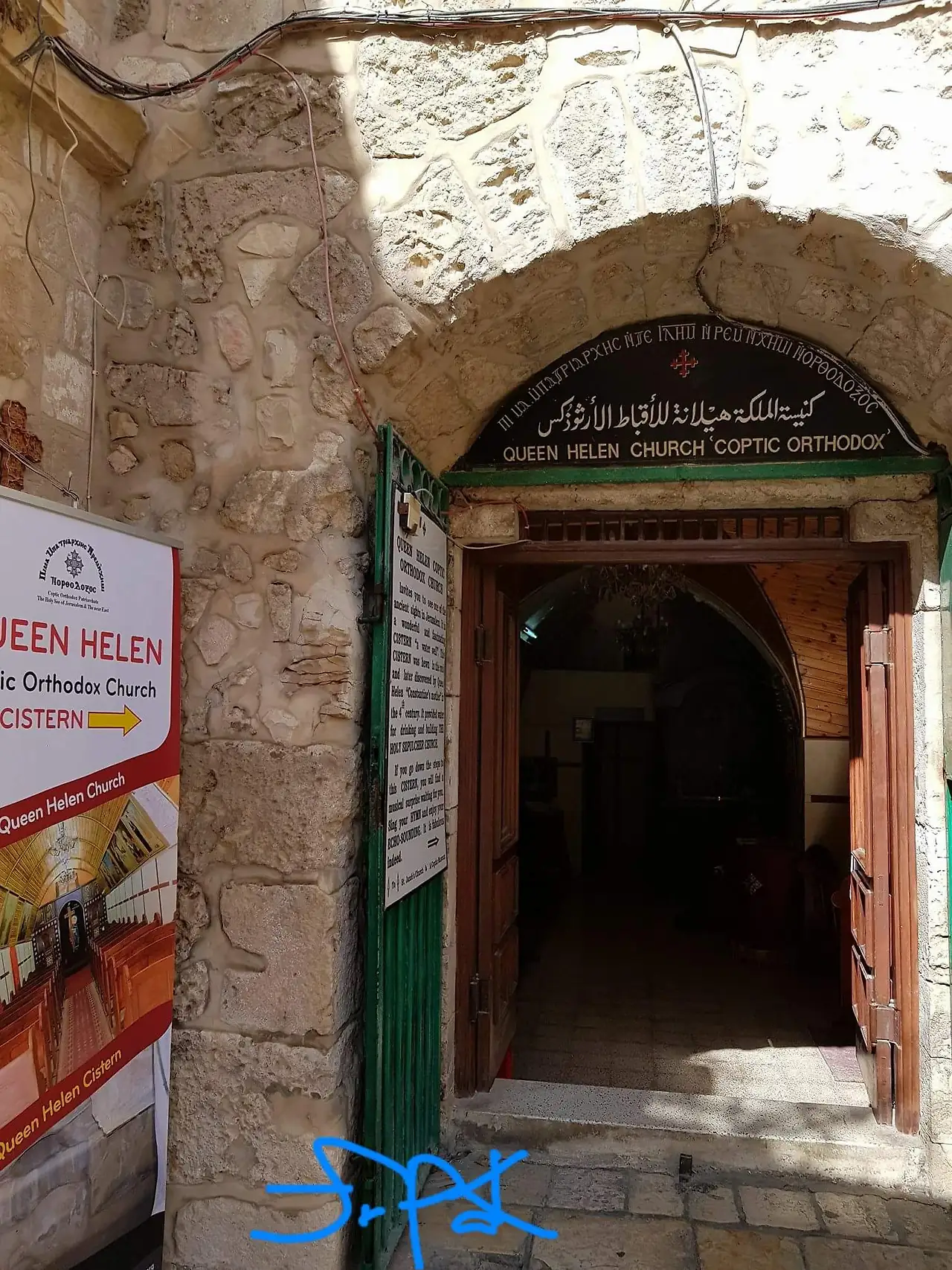 콘스탄틴 황제의 어머니 헬레나 성인은 4세기에 몸소 이스라엘 성지를 찾았고 많은 곳에 성당을 세웠다. 이스라엘 성지 곳곳에 그녀의 흔적과 노고를 볼수있다. 그녀가 아니었더라면 지금 어디가 어딘지 분간도 어려울 것이다. 이스라엘 성지 곳곳의 푯말을 보면서 성인을 기억했다. 그 푯말은 그녀의 독실한 신심과 겸손함의 결과물이었다. 로마 대제국 황제의 어머니이자 독실한 그리스도인이었던 그녀를 기리며 꼽틱 성당의 이름에 그녀의 이름을 붙였다. 성당의 입구 정문이 그녀의 삶을 말해주는 듯하다.