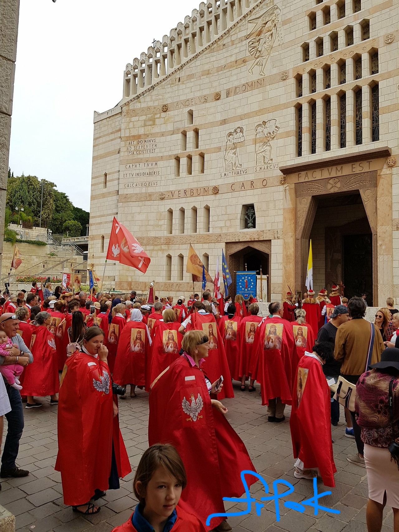 붉은 망또를 걸친 한 무리의 사람들이 웅성웅성 성당 뜰로 들어왔다. 선명한 진홍의 겉옷 밖엔 '그리스도 왕'의 모습이 보인다. 왕관을 쓰고 그에 어울리는 봉을 들고 위엄을 갖춘 전형적인 절대왕정 시대 유럽군주의 모습을 하고 있고 얼굴은 전형적인 유럽인의 모습이다. 중동에서 나신 그리스도의 모습은 아니다. 이 한 무리의 사람들은 폴란드 사람들이었다. 교황 요한 바오로 2세의 나라에서 온 이들은 깃발을 나부끼며 이 나자렛의 '수태고지 성당'으로 들어가고 있었다. 온 우주의 왕으로 오신 그분을 기리며 또 그분의 오심을 가브리엘 대천사가 성모님께 알리던, 즉 '수태고지'의 성지 바로 그 자리로 순례하며 그분의 오심을 기리는 것이다. 한적했던 갈릴레아의 마을 처녀였던 마리아에게 일어난 이 인류구원사의 대소식은 이제 세상의 모든 이가 아는 사실이 되어버렸다. 발터 벤야민이 말했듯이 '뉴스(news)'와 '이야기(story)'의 차이점이 기억났다. 뉴스는 듣는 순간 바로 그 가치를 잃어버리지만 이야기는 번역으로 또 재해석으로 계속 그 가치를 생산해 낸다는 사실이다. '수태고지' 즉 인류의 구세주 탄생 뉴스는 이제 뉴스가 아닌 사실이 되어버렸고 뉴스로서의 가치를 상실했지만 갈릴레아의 처녀 마리아에게 일어난 '수태고지'의 이야기는 계속해서 그 가치와 의미를 가지고 있다. 우리 순례자는 그 이야기의 한 부분이 되기위해 또 그 이야기 '재-창조'의 일부가 되기위해 순례를 하는 것이다. 나, 동방의 순례자가 성모님처럼 가브리엘 대천사의 소식을 직접 들으려 멀리 이곳까지 온 것이다.
