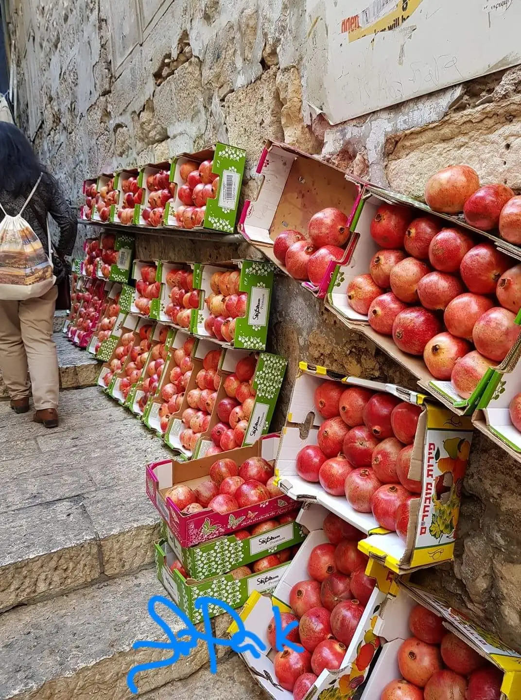 석류안의 촘촘히 보석처럼 박힌 석류알 숫자와 유대인이 토라(구약성서의 모세오경)에서 따온 율법수와 같기 때문이다. 석류알은 613개고 유대인들이 지켜야 할 율법수도 613개다. 세어보지 않아서 모르겠지만 많다는 것은 확실하다. 그들은 철저하게 이 율법을 지킨다. 그리고 상징이기에 석류장식을 집안에 하기도 하고 심지어 토라를 적은 시내고그(유대인 회당)의 두루마리에도 그려져 있다고 한다. 예루살렘 거리에선 또 석류를 직접짜서 쥬스로 파는 노점도 많다. 석류 쥬스는 딸기쥬스처럼 빨갛게 일회용 컵이나 병에 담겨 전시돼있다. 오히려 나에겐 석류를 보는게 쥬스를 마시는것보다 낳다. 뻘겋게 속보이는 수많은 율법에 질려서 일까?