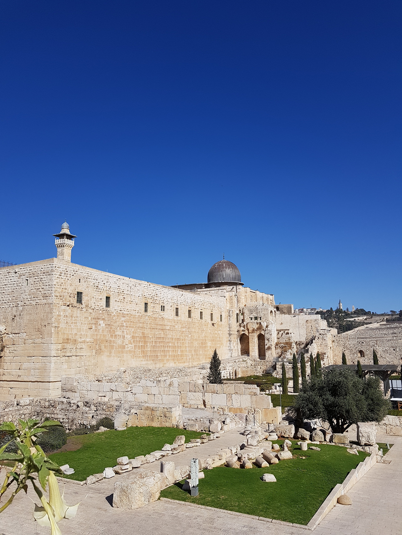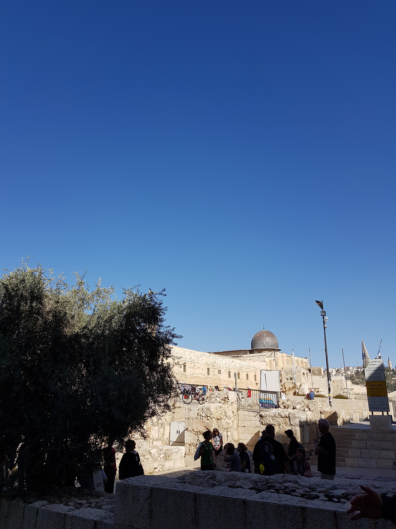 이 세 아브라함계 종교들의 성지인 예루살렘이 항상 논쟁과 폭력으로 얼룩지는 것은 안타까운 일이다. 1929년 성전산 한쪽인 통곡의 벽 아래에서 유혈참사가 일어났는데 이 좁은 장소에서 무려 133명이 죽었고 339명의 유대인들이 부상당했다고 한다. 그리고 그후 1948년 이스라엘 독립전쟁과 그 이후 동 예루살렘은 요르단이 점령 차지하고 있었다. 그렇기에 당시 모든 유대인은 성전산 출입이 약 16년 동안 금지되었다. 예루살렘의 유대인 구역조차 유대인들은 들어갈 수가 없었다고 한다. 그러다가 1967년 6일 전쟁으로 이스라엘이 승리하며 서안(West Bank)지구를 점령할때 이 동 예루살렘도 같이 점령획득함으로 이스라엘에 편입되었다. 그리고 지금 통곡의 벽이 있는 곳은 한때 모로코 구역이었으나 점령군 이스라엘이 불도저로 밀어버렸다고 하며 통곡의 벽에 기도하러 오는 순례객들을 위한 넓은 광장이 되었다. 지금 밖으로는 평화로워 보이는 이곳이지만 그 분쟁의 불씨는 아직도 훨훨 타고 있다. 언제 터질지 모르는 화약고처럼. 예루살렘의 뜻이 ‘평화의 도시’임을 다시 상기하며, 평화가 절실히 필요한 이곳이기에 평화가 오길 염원했다. 이곳에 평화가 없으면 세상의 평화도 없을 것이라 생각하니 밝은 대낮이 어두워졌다.