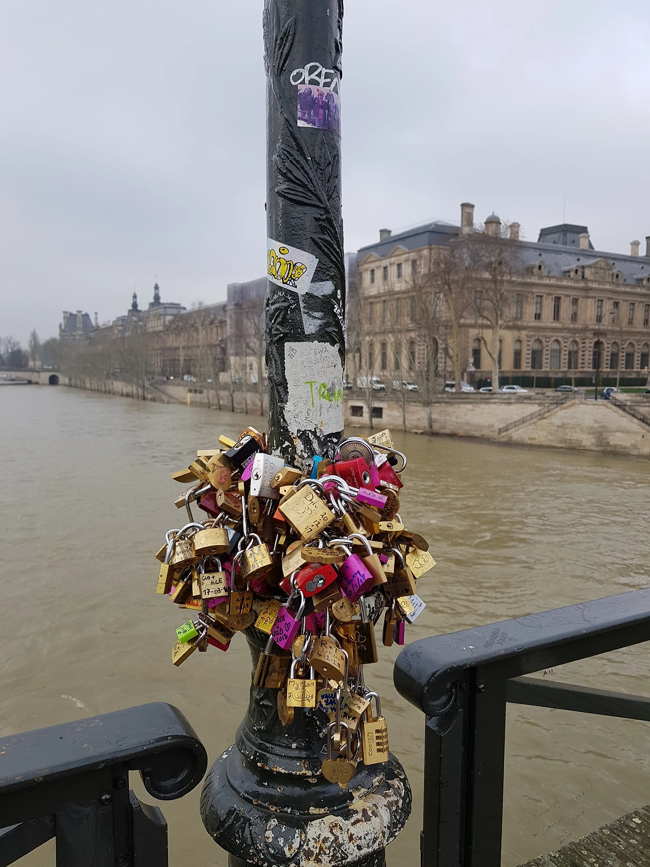 센느 강 물살은 가끔은 빠르고 가끔은 느리다. 높낮이도 달라지고 강색도 자주 변한다. 영원이란 단어를 주문처럼 외우며 던진 열쇠는 강밑바닥에서 부패하고 있을 것이다. 그렇다. 영원이란 꿈이다. 열수 없다는 건 천국이 아닌 지옥이다. 시간에 썩어가는 부패이다. 문열고 탈출 못하는 아수라장 지옥이다. 서로를 옭아매서 잠겨진 채 열리길 고대하는 자물쇠는 지옥의 상징이다. 서로 영원이란 마법에 갇혀있는 것이다.