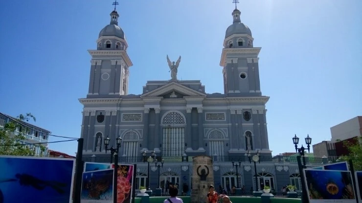 산티아고 중심광장에 서 있는 주교좌 성당. 이 주교좌 성당앞에서 거센 혁명의 물결이 일었다. 체 게바라도, 피델 카스트로도, 산티아고 시민들도. 광장 주변의 건물도 특색있다.