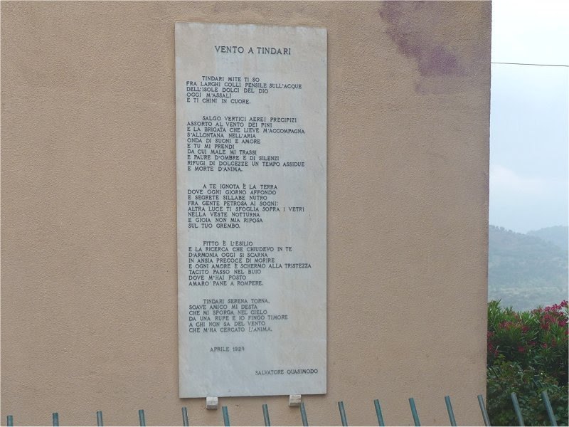 아래의 '시'는 1959년 노벨문학상 수상자인 이탈리아 시인 살바토레 콰지모도의 시 '틴다리에 부는 바람'입니다. 시인은 시칠리아 출신으로 외지에 살면서도 항상 고향인 시칠리아를 잊지 않았습니다. 이 시를 읽으면 그의 고향사랑이 듬뿍 듬뿍 묻어나오며 시칠리아 섬의 외로운 한 구석, 아름다운 절벽위 고대 마을, 틴다리(Tindari)의 성당앞 광장은 이를 기려 '콰지모도 광장'이라 불립니다. 사실 광장이라하기엔 보통 집 정원정도의 크기지만요. 그의 '시비'도 여기 있습니다.(제가 이탈리아어를 몰라 영어에서 번역해 보았습니다.)
