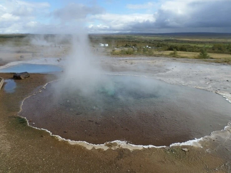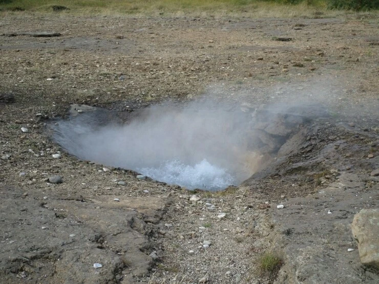 아이슬란드는 화산이 많아 땅밑으로 마그마가 무섭게도 지나는데 가끔씩 바다에서 멀리 떨어진 산 언덕에서 이 마그마에 의해 데워진 물이 하늘로 치솟는 '게이시어(Geysir)'가 많았다. 내가 가서 본 것은 ‘하우카달러(Haukadalur)’란 이름의 언덕(산)의 게이시어였다. 매 일정시간마다 뜨거운 물줄기를 뿜어 내 올리는 장관을 볼 수 있었으며 또 온도가 높아 수증기가 공중에서 일고 수증기는 또 바람때문에 사방으로 흩어진다.