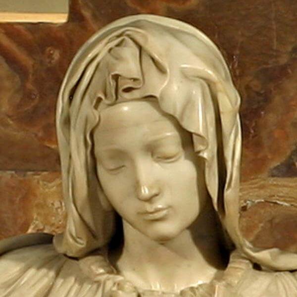 Pietá (1498), Carrara marble, St. Peter’s Basilica, Rome–174 cm × 195 cm [68.5 in × 76.8 in]