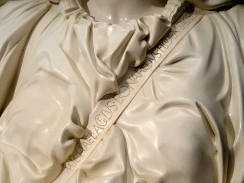미켈란젤로는 이 사인을 새긴 다음 엄청난 후회를 했다고 한다. 예술가로서의 자존심땜에 저지른 것이 곧 ‘허영(vanity)’이었음을 깨달은 것이다.