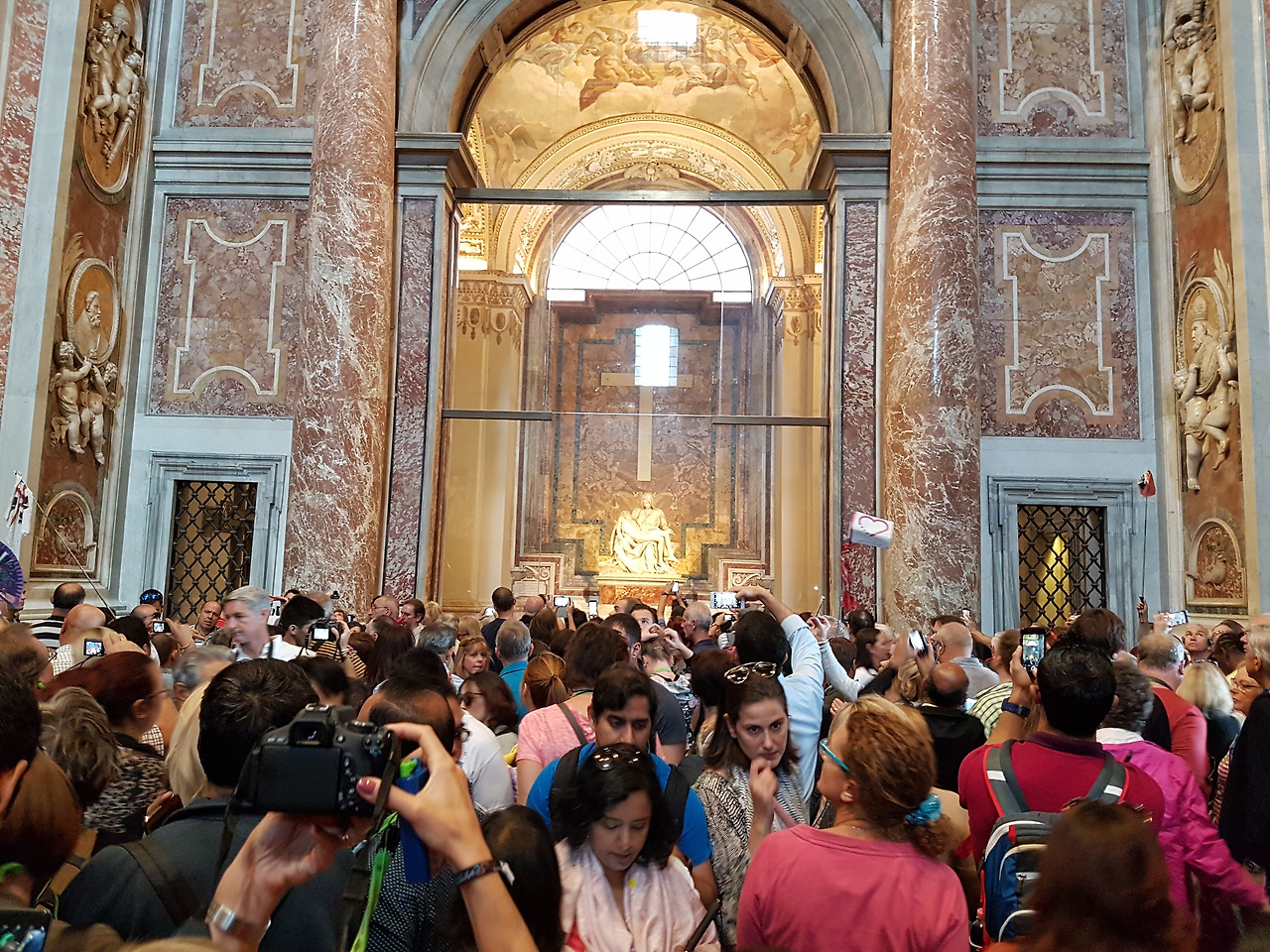 미켈란젤로의 '피에타(Pieta)’ 조각상을 가까이서 보려고 이리 밀리고 저리 밀리는 인파, 그 와중에서 카메라를 높이 들어 이리 찍고 저리 찍어대는 공중의 많은 손을 보면서 생각했다.