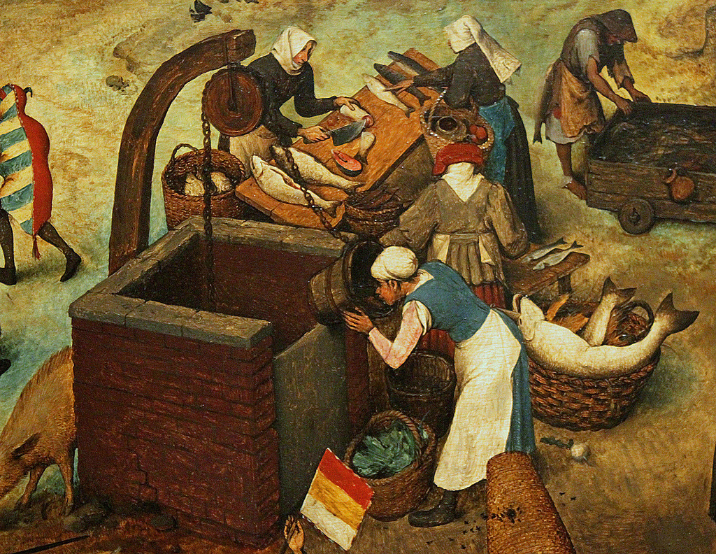 우물에서 물을 긷는 모습이 보이고 또 옆에 생선이 보인다. 사순절 동안 육식을 금하고 대신에 생선과 채소등을 섭취하였다. 많은 서구의 가톨릭 신자들은 이 전통을 따라 매 금요일 '금육'을 한다.