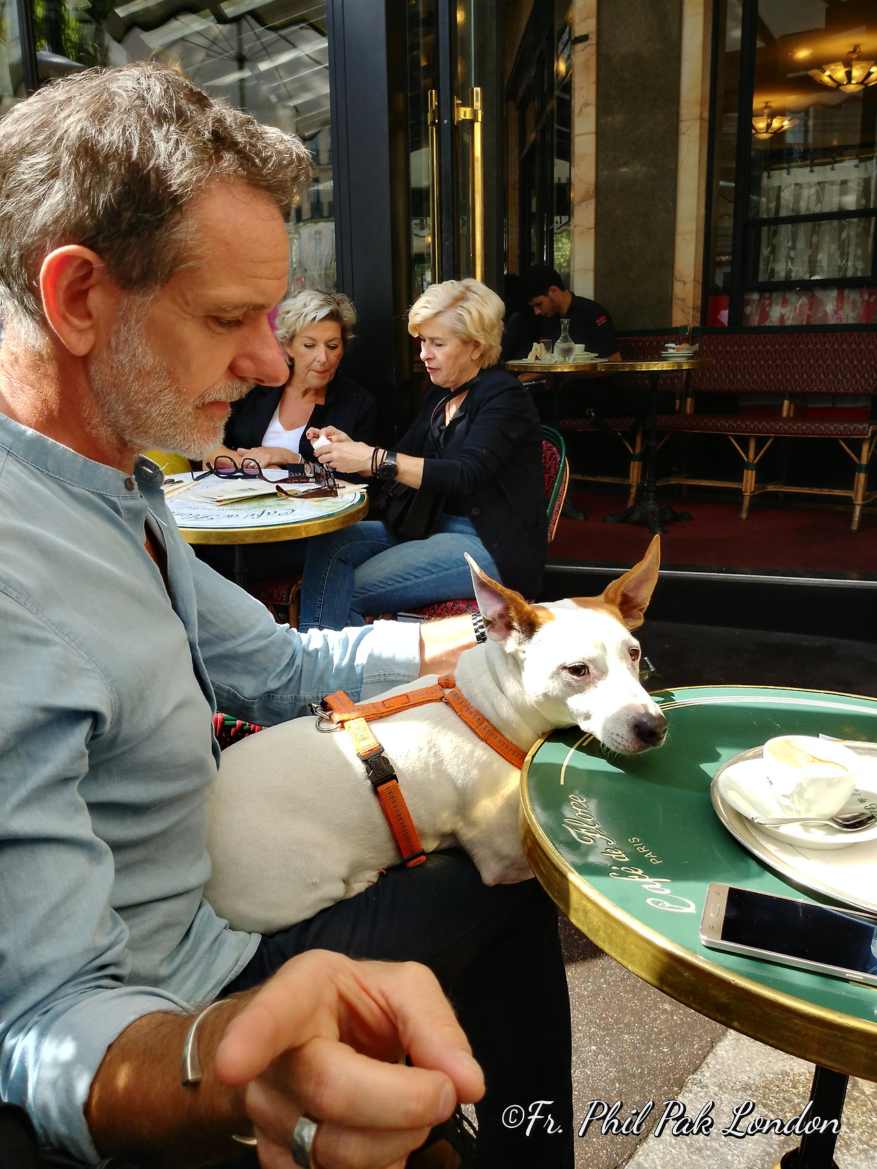 복날에 개를 본다는 것은 복날에 닭을 보는 감정과도 다르다. 몇 한국인에겐 말이다... 한때 프랑스와 세계를 뒤흔들었던 지성인들이 모여 토론하고 커피를 마셨던 곳, 파리의 '카페 드 플로라(Cafe de Flora)'에 갔다. 그것도 복날에! 그리고 또 우연인지 운명인지, 프랑스 견공씨가 떡하니 바로 옆자리에 앉았다. 사르트르와 보부아르가 말많은 친구들과 만나 토론을 즐겼던 곳, 피카소가 그림을 구상하였던 곳, 멀리 미국에서 방랑자로 이국 프랑스에 머물며 가난하지만 행복했다고 한 헤밍웨이가 자주 들렀던 '카페 드 플로라'에서 난 이 프랑스 견공 [犬公]씨와 우연히 마주친 것이었다. 견공씨는 바로 옆 테이블 위 나의 진한 에스프레소와 나를 멀둥멀둥 쳐다보았다. 주인 아줌마와 아저씨는 실존철학자처럼 토론하는지 싸우는지 열심히 끝도없이 대화하고 있었다. 그들의 알아듣지 못하는 불어대화를 들으며 이 복날에 개만 생각하는 우리나라 몇몇 아저씨들이 잠깐 떠올랐다.
