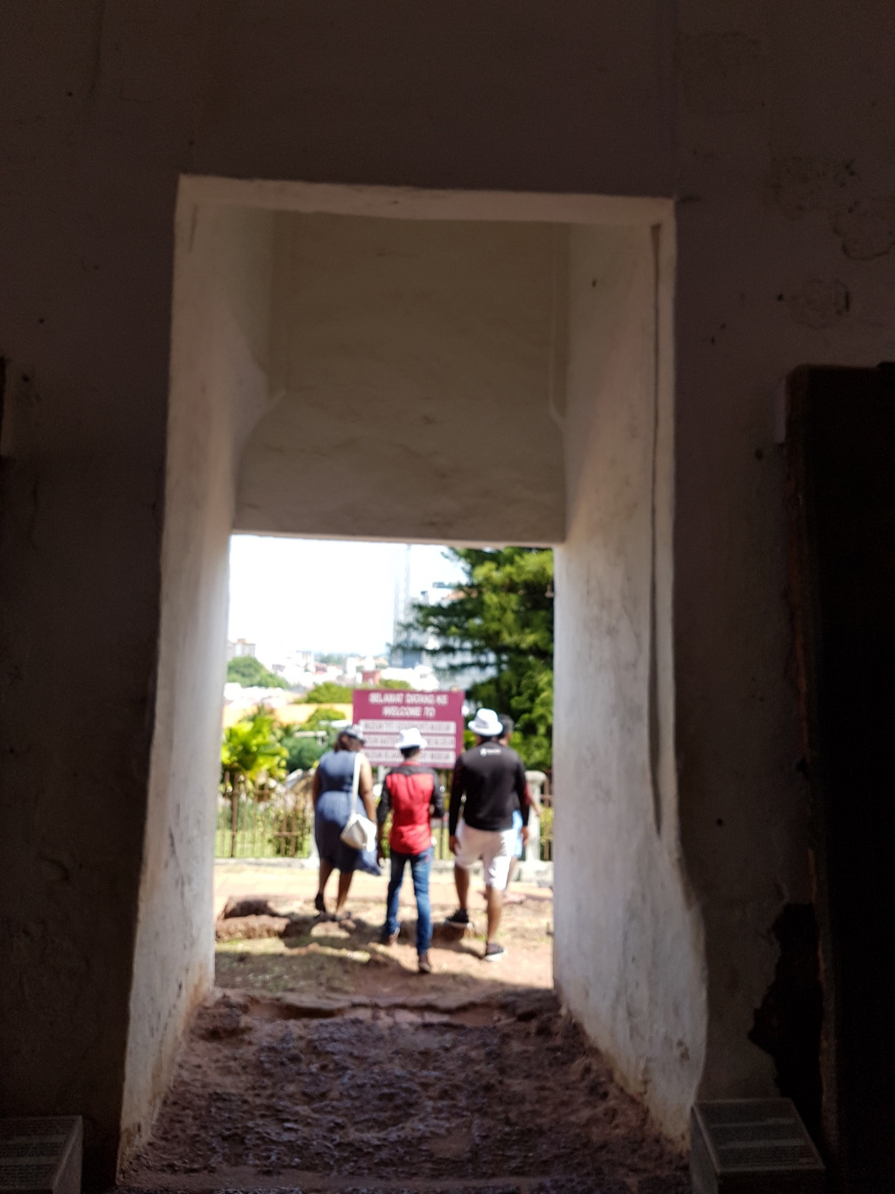 성당의 오른편 문을 통해 밖으로 나왔다. 웅성웅성 사람들이 그늘에 몰려 있었다. 수녀님이 수녀원의 지붕을 손가락으로 가리키며 보여주셨다. 시간땜에 수녀원 방문을 못하는게 아쉬웠다. 훗날을 기약하며 다시 지름길로 해서 시내로 내려왔다. 옛 부두였는지, 바다에 면해 있는 조그만 강이 보였다. 옛날에는 유럽선원들로 북적했을 터였다. 그리고 성벽이 폐허로 남아있는 그 강변공원을 걸었다. 강 건너편엔 레스토랑과 펍이 밀집해 있었다. 조금 더 가니 검은색 옛 포르투갈 범선이 보였다. 지금은 박물관으로 전시 오픈하고 있었다. 그러나 그 배는 당시의 배는 아니었고 모형이었다. 런던 그리니치의 '커티 사악'보다 조금 더 높다는 느낌을 받았지만 사실 배의 바로 밑둥에서 올려다 보기에 배의 갑판 높이에서 본 커티 사악에 비해 높아보이지 사실은 비슷한 규모였다. 잠시 몇 백년전 배를 타고 대양을 건너 황금을 찾아 온 포르투갈인과 네덜란드인들을 생각했다. 내가 던진 동정 두닢을 생각했다. 아까웠다.