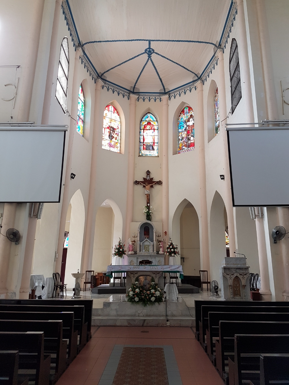 말라카의 시내에서 멀지 않은 ‘프란치스코 사베리오 성당’에 도착했다. 제의실 담당자가 정답게 우리를 맞아 주었다. 날씨는 찜통같았고 그 찜통열기는 큰 성당안에도 마찬가지였다. 난 거기에다 미사를 위해 ‘장백의’에다 ‘차수블(Chasuble)’까지 겹쳐 입으니 마치 온탕도 아닌 열탕에 들어 온 기분이었다. 벽에 조르륵 붙여놓은 옛날 선풍기 소리가 비행기 안의 소음처럼 들려 가뜩이나 혼미한 정신에 혼란만 가중시켰다. 그 와중에도 이곳 성당에서 만나기로 한 말레이시아 수녀님이 오셨나 걱정되어 성당안을 수시로 내려보았다. 그러나 수녀님의 모습이 보이질 않았다. 런던에서 오래 전부터 알게 된 수녀님은 이 곳 말라카에 부임하셔서 가톨릭 학교를 운영하셨다. 런던은 수녀님의 동생이 일하고 있어 가끔 다니러 오셨고 그 덕분에 알게 되었다. 그것도 거의 10년이 다되었다. 걱정이 됐다. 혹시 나의 이멜을 못보셨는지, 혹시 시간을 내가 잘못 말했는지. 이곳까지 와서 수녀님을 못만난다면 낭패일성 싶었다. 다행히 미사가 거의 막바지에 이르렀을 때 고개들어 보니 성당 맨 끝에 수녀님이 미소지며 앉아 계셨다. 나중에 알고보니 미사시간을 10시 미사가 아닌 10시 30분이라고 성당관계자가 얘기 하는 바람에 그 시각에 맞춰 오신 것이었다. 하여튼 수녀님을 뵈니 반가웠다.