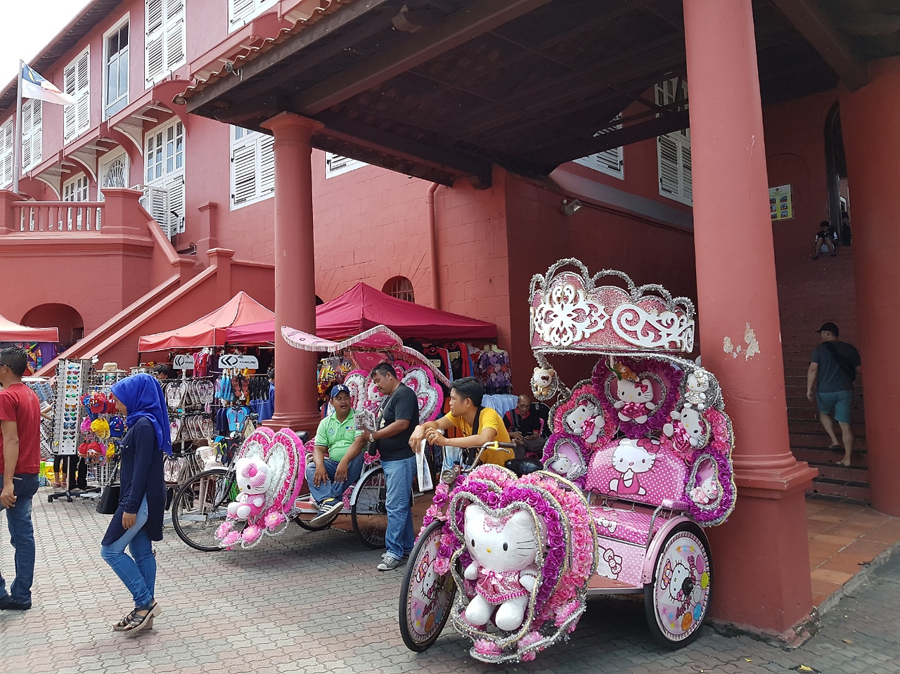 우리는 시내 가운데, 바다 가까운 언덕위, ‘세인트 폴의 언덕(St Paul’s Hill)’이라 불리는 곳에 서 있는, 옛 네덜란드 통치시절 관사였고 지금은 박물관으로 쓰이는 곳으로 갔다. 꼭 베이징의 자금성같은 붉은 색을 입힌 유럽식 건물안에 말라카의 역사를 모아 두었다. 대부분이 이곳을 지배한 통치자들의 유물들이었고 심지어 각국의 군인복장을 실물처럼 복도에 전시해 두었다. 한가지만 뺀다면 중국 이민자와 중국 문화의 영향으로 이것저것 수집해 온 중국자기들이 많았다. 영국의 박물관에서 자주 볼수있는 백색 자기에다 청색 그림을 그린 자기들이었다. 중국의 자기는 이렇게 동서양 박물관에서 빠지지 않았다. 별로 크지 않은 건물 중앙에 첫 유럽인이었던 포르투갈시대때 판 네모진 우물이 중앙에 놓여 있었다. 시간 지체할 이유가 별로 없는 박물관을 슬쩍 슬쩍 훑어보고 박물관 뒷문에 난 길로 사베리오 성인이 묻혔던 성당으로 올라갔다. 성당으로 올라가는 오솔길 아래로 시내가 훤히 보였고 그 너머로 바다도 보였다. 그래서 이 풍수에 꼭 맞는 명당에 관사도 짓고 성당도 지었음을 알수 있었다. 식민자들이나 선교사들은 땅보는 눈은 대단했다는 어느 신부님의 말씀이 기억났다. 요지에 성당을 지은 건 한국이나 말라카나 마찬가지였다. 바람 한점 없는 푹푹찌는 날씨였다. 숨이 턱턱 막히는 땅에서 희망은 저 아래 보이는 시원한 바다였다. 그 바다를 통해 사람들은 물자를 교환했고 종교와 사상은 소통되었다. 토템부족 신앙에서 힌두교가 왔고, 중국인을 통해서 불교와 도교가 아랍인을 통해선 이슬람이 전해 왔다. 그리고 포르투갈인들을 통해 가톨릭이, 네덜란드인을 통해 프로테스탄트가 그리고 영국인을 통해선 성공회가 들어왔다. 각양각색의 종교만큼 말라카는 인종도 다양하였다. 말레이인, 중국인, 인도인, 아랍인 그리고 소수지만 ‘유레이시안(Eurasian)’이라 불리는 유럽인과 아시아인의 혼혈인들이 서로 이웃하며 살고 있다 한다. 사실 거리에선 머리에 베일을 쓴 단정한 이슬람 여학생들이 가장 많이 눈에 띄었다. 대부분이 말레이 남자들인 관광객을 위한 인력거(릭쇼) 운전수들이 이 언덕 아래 박물관 앞 로터리 옆에 진을 치고 관광객을 기다리고 있었다. 알록달록 원색을 입힌 인력거 운전석에 비스듬히 누운 말레이 운전자, 그리고 인력거 곳곳에 붙인 앙증맞은 헬로 키티가 웃음짓게 만들었다.