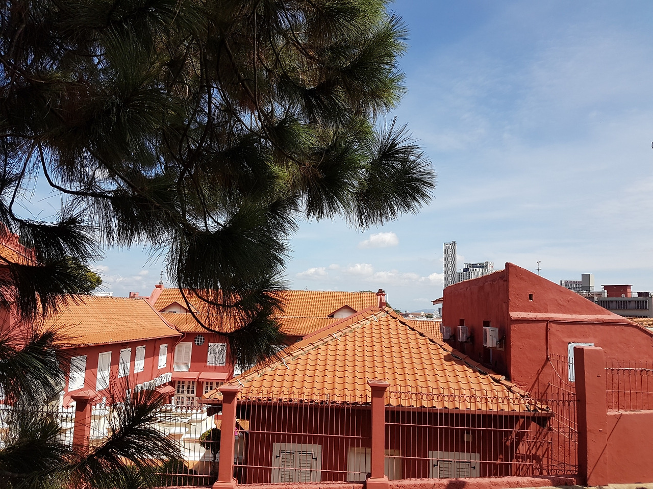 말라카 시내로 막 들어가는 코치안의 일행 대부분은 달콤한 아침잠을 자고 있었다. 가끔은 아늑한 호텔 침대보다 코치안에서 더 쉽게 잠이 든다. 그런 우리를 깨우며 가이드는 창밖을 내다 보라고 소리쳤다. 낮게 지어진 보통의 집들이 열대식물 사이사이 서있었다. 옛날엔 이곳까지 바닷물이 들어왔다고 했다. 그래서 이 지역 사람들은 집을 항상 1미터 가량 높게 지었다고 했다. 지금은 그 흔적만이 남아 있을 뿐이었다. 원래부터 살아온 말레이 주민들은 이 바다와 뗄레야 뗄수없는 관계를 가졌을 것이다. 바다를 보면서 저 바다 넘어 유럽이란 또다른 대륙의 존재를 상상했을까? 그들 삶의 터전인 바다로부터 건너온 외세의 영향을 받을 줄 상상이나 했을까? 말라카 시내로 들어서자 코치는 속도를 서서히 줄이기 시작했다. 그래서 지나는 시내 풍경과 건물도 더 자세히 볼 수 있었다. 그래서 혜민 스님은 은유로 ‘멈춰야 비로소 보인다’고 하셨을까? 천천히 보이는 거리의 풍경이 뭔가 보통 동아시아의 도시와 달랐다. 우선 유럽식 건물들이 많았다. 건물 색깔도 눈부신 햇살과 더불어 한층 밝고 화사한 원색을 사용하였다.