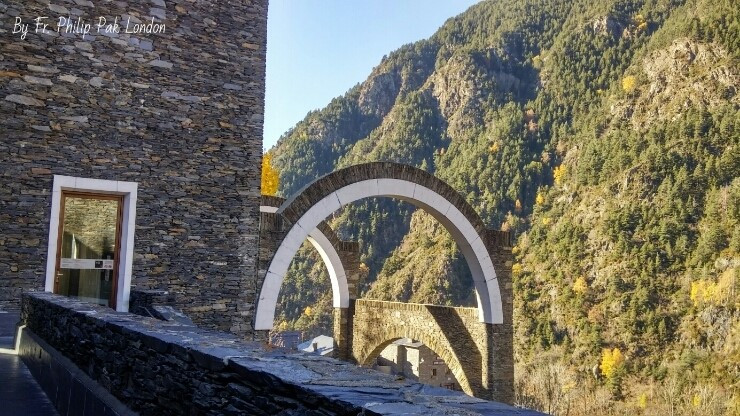 그 산속을 또 올라가 이 미니국가의 수호성인인 ‘메릭셀 성모님(Our Lady of Meritxell)’ 성상을 모신 작은 성당을 찾았다. 타운에서 산쪽으로 한참 올라가야 있었다. 안타깝게도 원래 성당은 화재로 타버렸지만 바로 불이 난 그 자리 그때 그대로 보존하고 있었다. 그 소성당 옆에 현대식으로 새로 이 성당을 지었다. 성당에서 내려보는 산세도 좋고 올려보는 산세도 참으로 좋았다. 명당 자리였다. 안도라 사람들은 풍수에도 밝은가 보다.