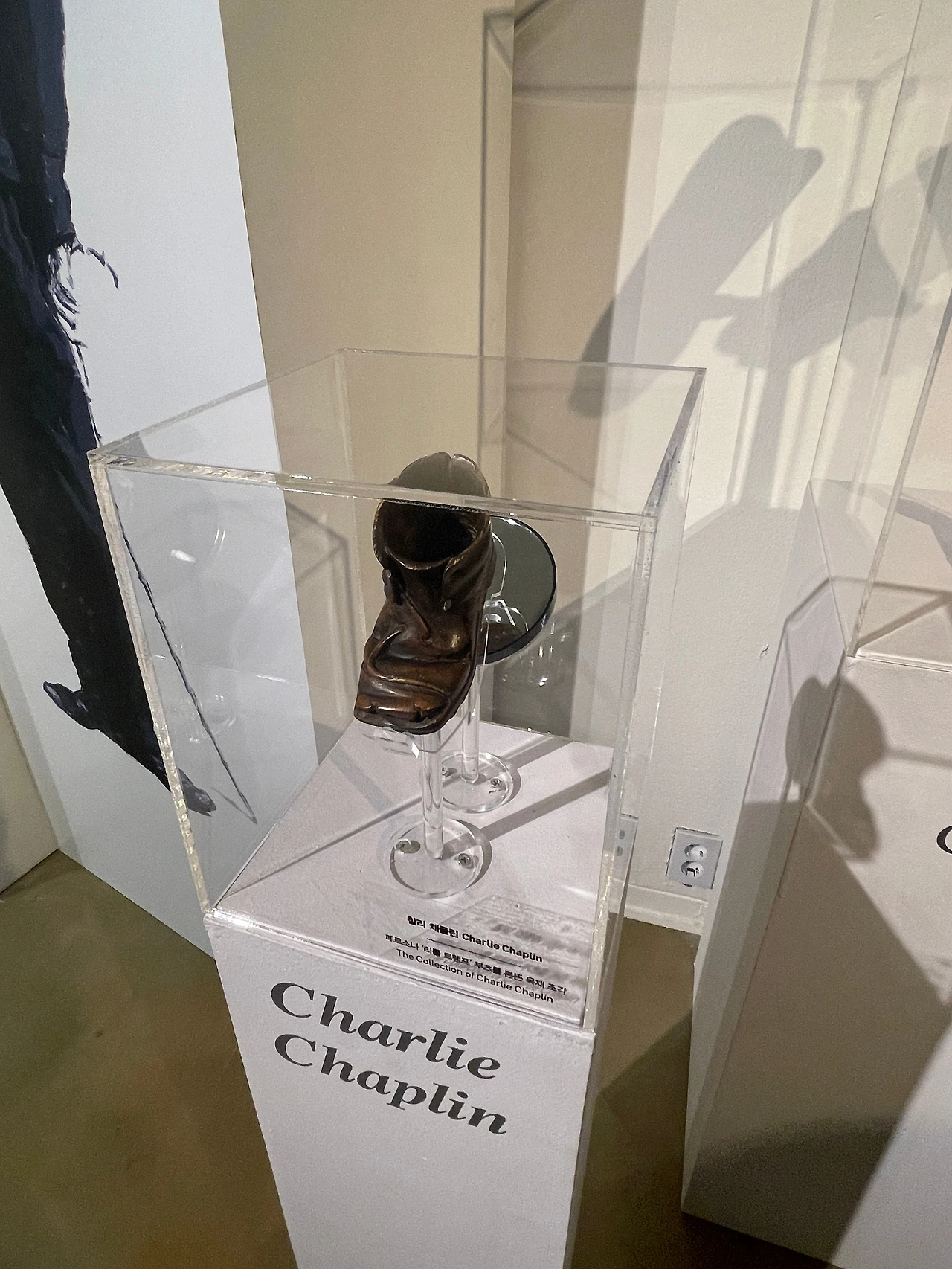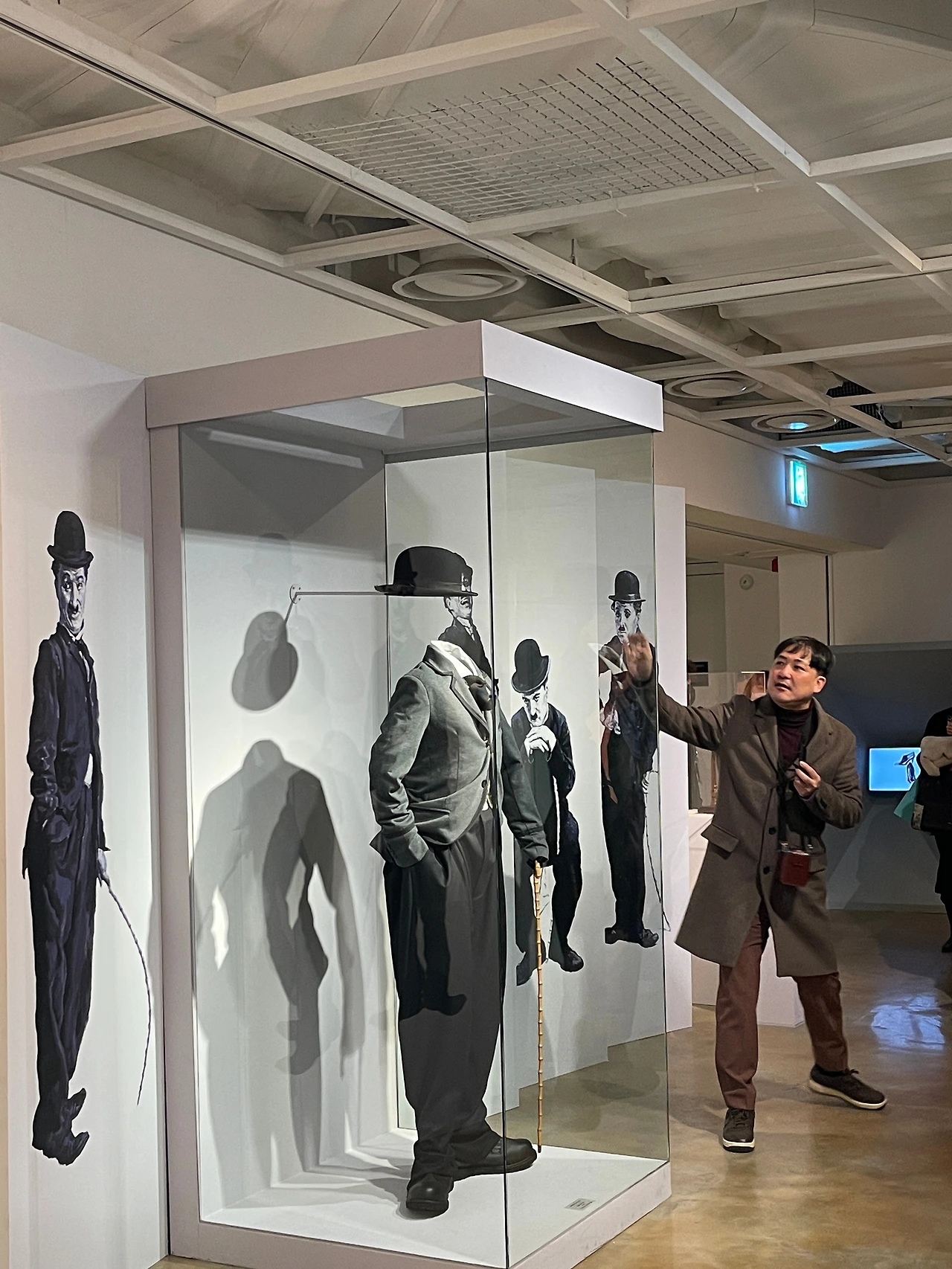 1관의 마지막에 코너로 가까워지면 희극 배우 찰리 채플린의 영화 속 의상 및 그를 상징하는 설치물을 만날 수 있다.