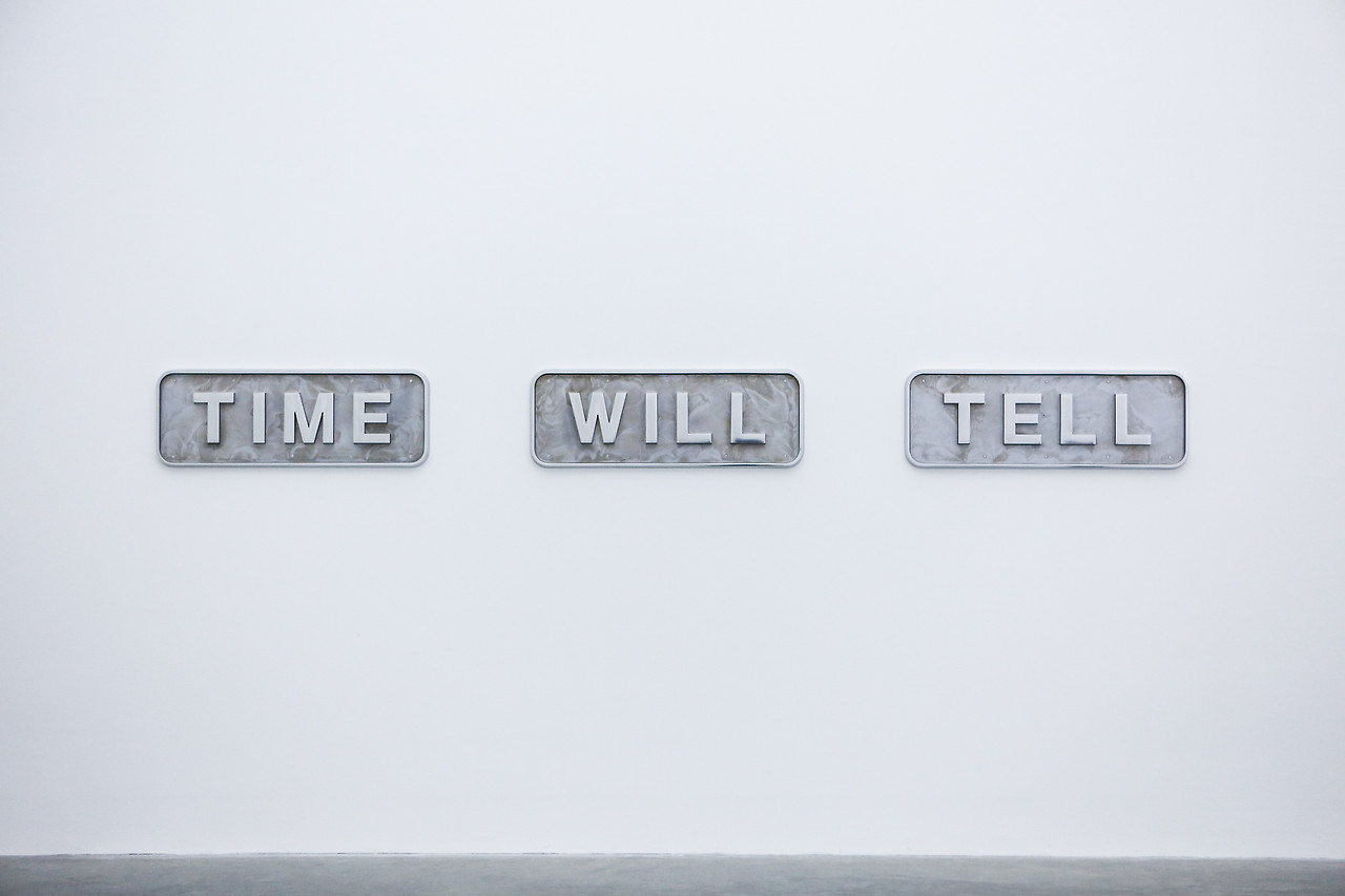 타임 윌 텔 (Time Will Tell) 전시에서 새로 발표한 대런 아몬드 (Darren Almond)의 작품들은 '시간'을 다룬다는 점에서 작가의 이전 작업들과 연장선 상에 있다고 할 수 있다. 작품의 특징은 시계라는 프레임에서 숫자를 꺼내 작가가 새롭게 구성한 프레임에 불규칙하게 배열했다는 것이다. 무작위로 숫자들이 나타나지만 동시에 정돈된 느낌이 인상적이었다. 완전하지 않은 형태를 지닌 것들을 포함해 무작위로 나열된 수많은 숫자들이 정돈된 느낌이 든 것은, 같은 크기의 프레임에 모눈종이 같은 수직선들이 열과 행을 정렬해주고 같은 크기의 숫자를 배치했다는 점에서 영향을 받은 것 같다.