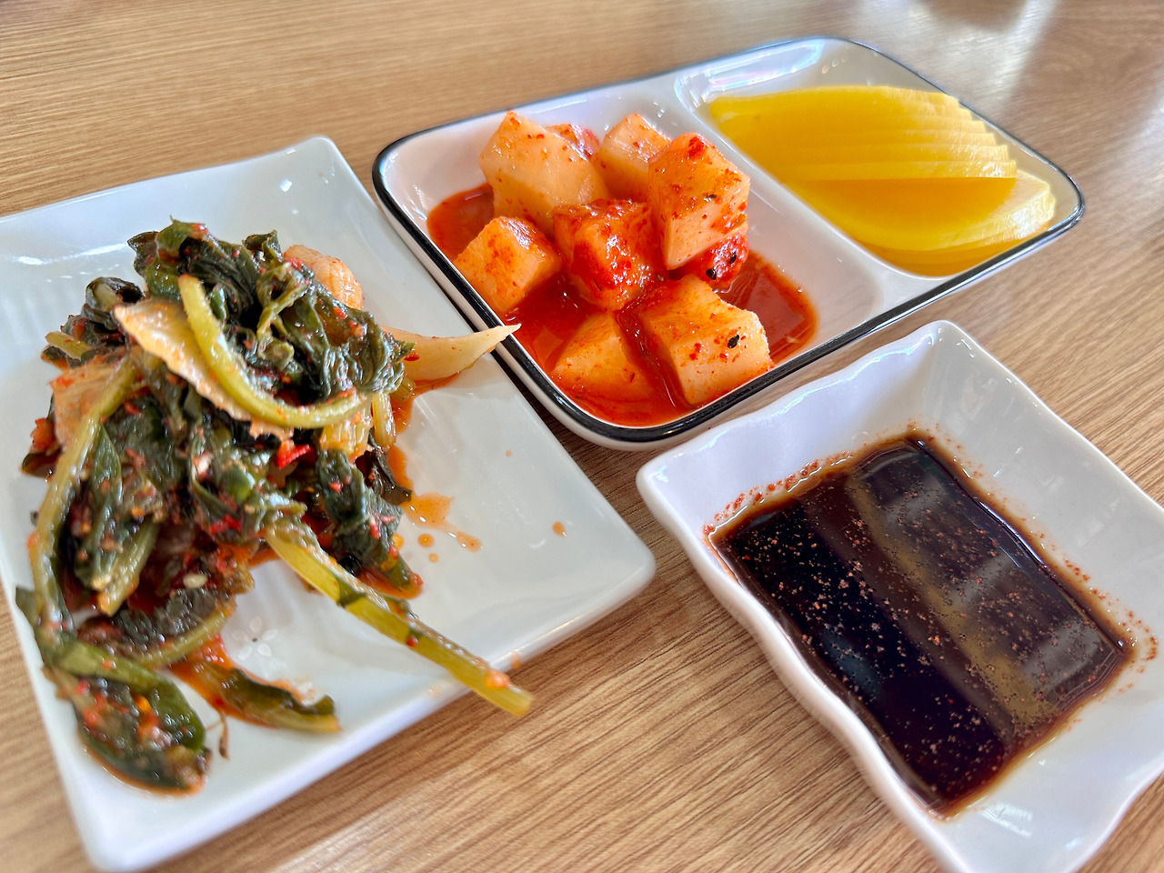 도착한 기본 찬. 달달한 탕수육에 빠지면 섭할 간장 소스는 별도로 제조하면 되시겠다.