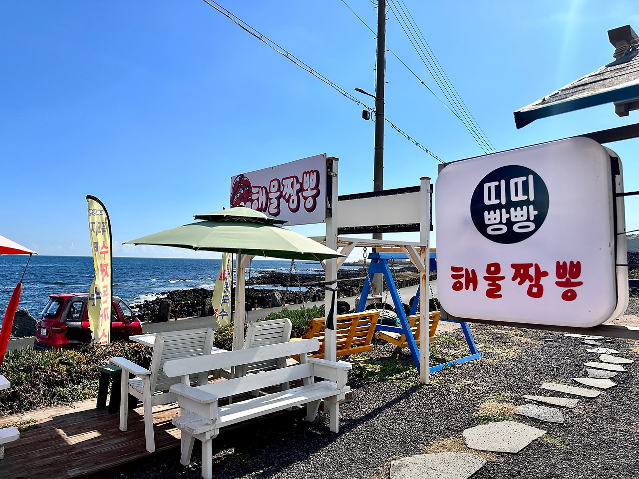 가게는 야외 테이블 이용도 가능한데, 이야. 이거 날씨 좋은 날엔 끝내주겠구나. 다만 왜 풍랑주의보 시 휴무인지는 알겠다. 조금만 바람이 불어도 바다 인근이라 그런지 날림이 극심하니 말이다.