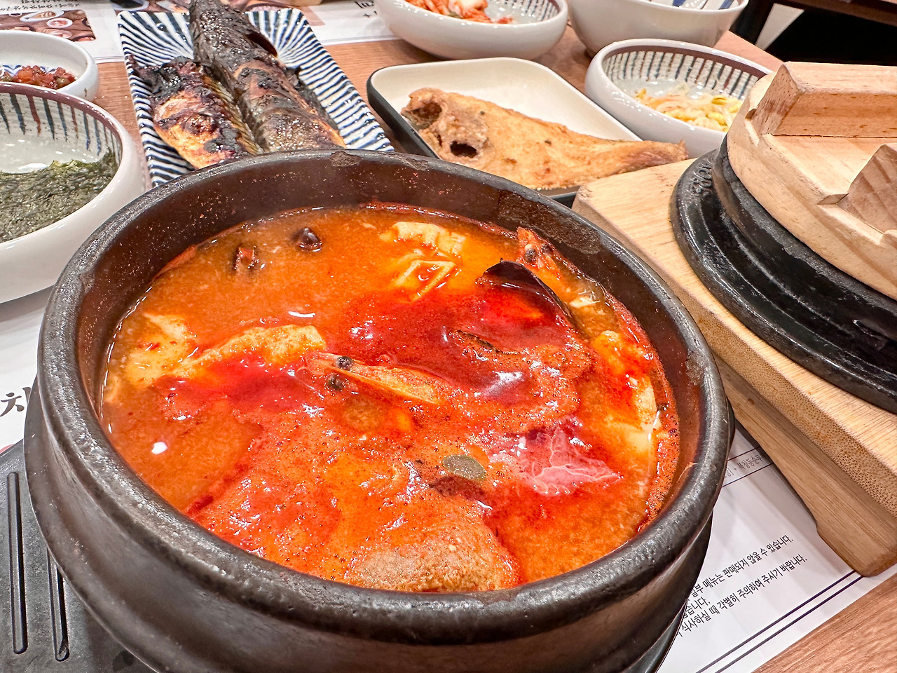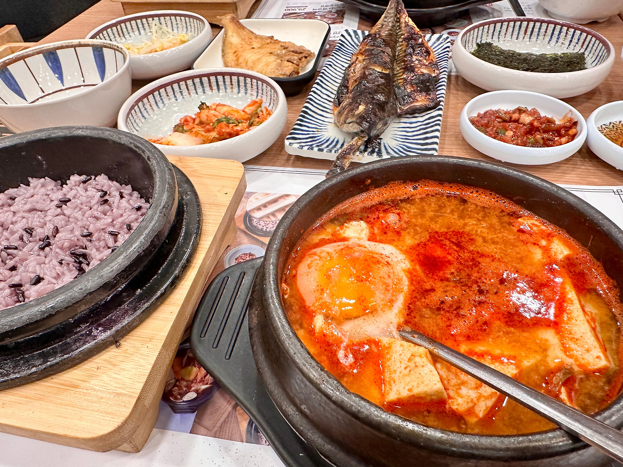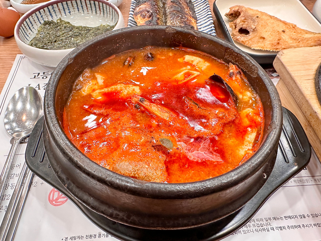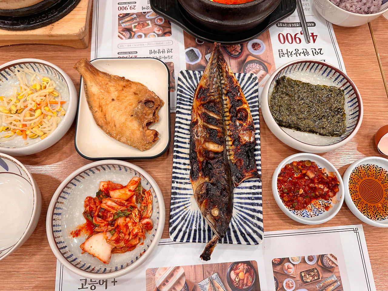 때문에 당연히 기본으로 북창동순두부를 깔아주고, 허하겠다 싶어 고등어구이를 더하기 위해 고등어구이 1인 한상차림으로 주문.