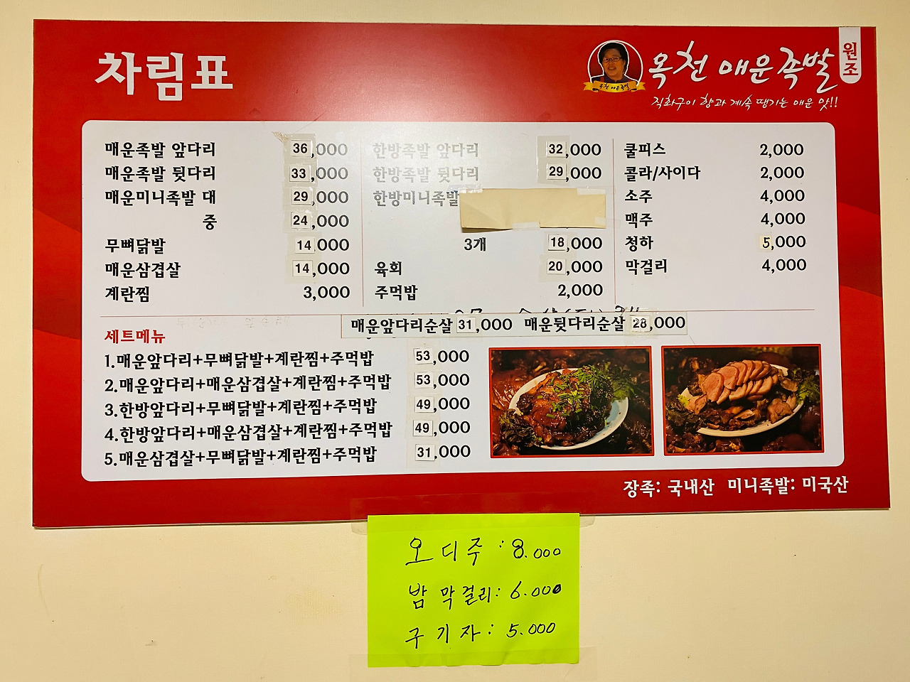 당연히 포장도 가능하기 때문에 입구에서도 메뉴판을 살필 수 있다. 역시 인상을 알리는 슬픈 딱지. 요새 식당에 가면 기존 메뉴판 가격 위로 천의 자리와 만의 자리에 덧댄 흔적을 자주 목격한다. 물가 상승. 메뉴판과 필자의 맘을 아프게 한다.