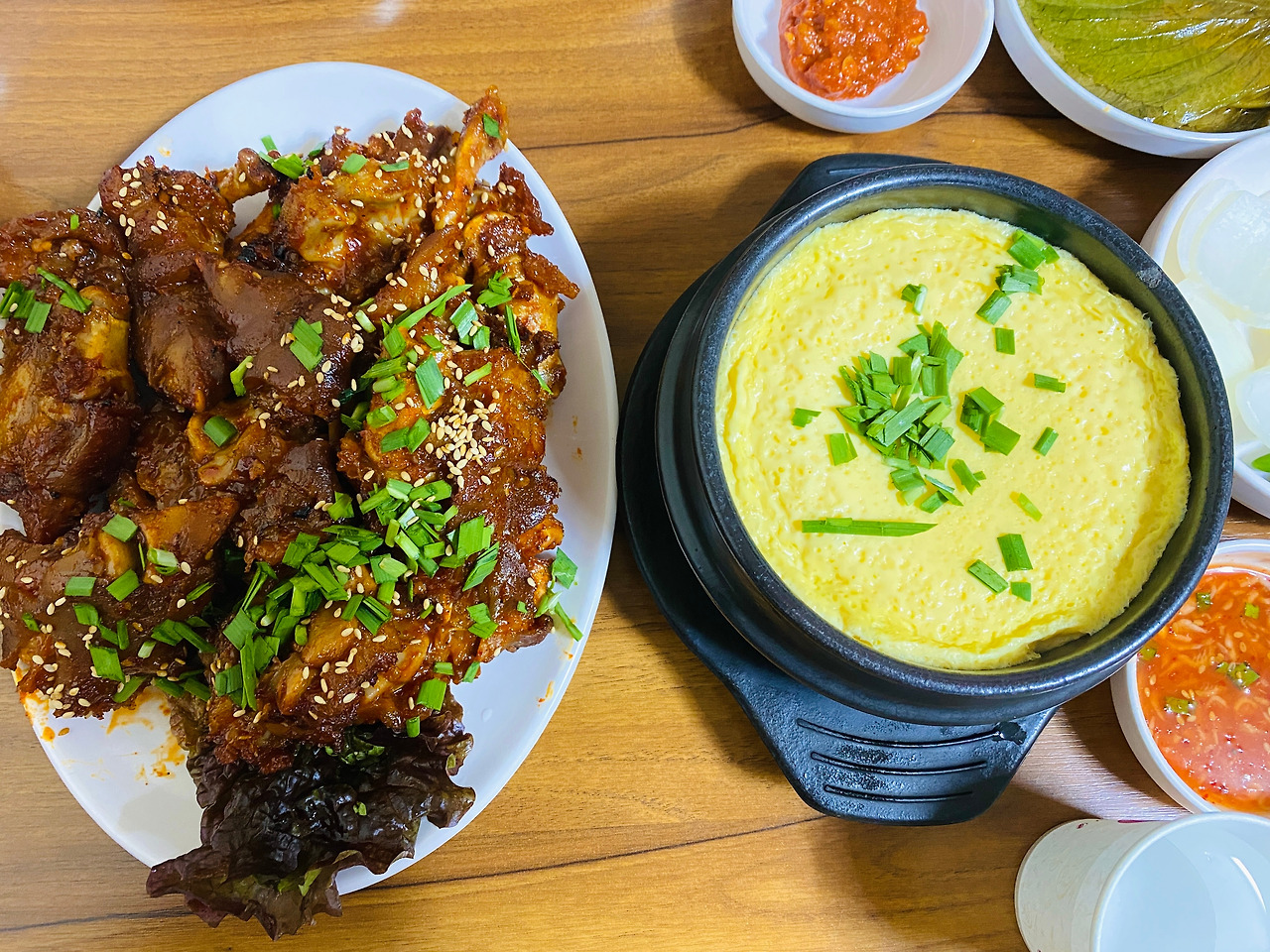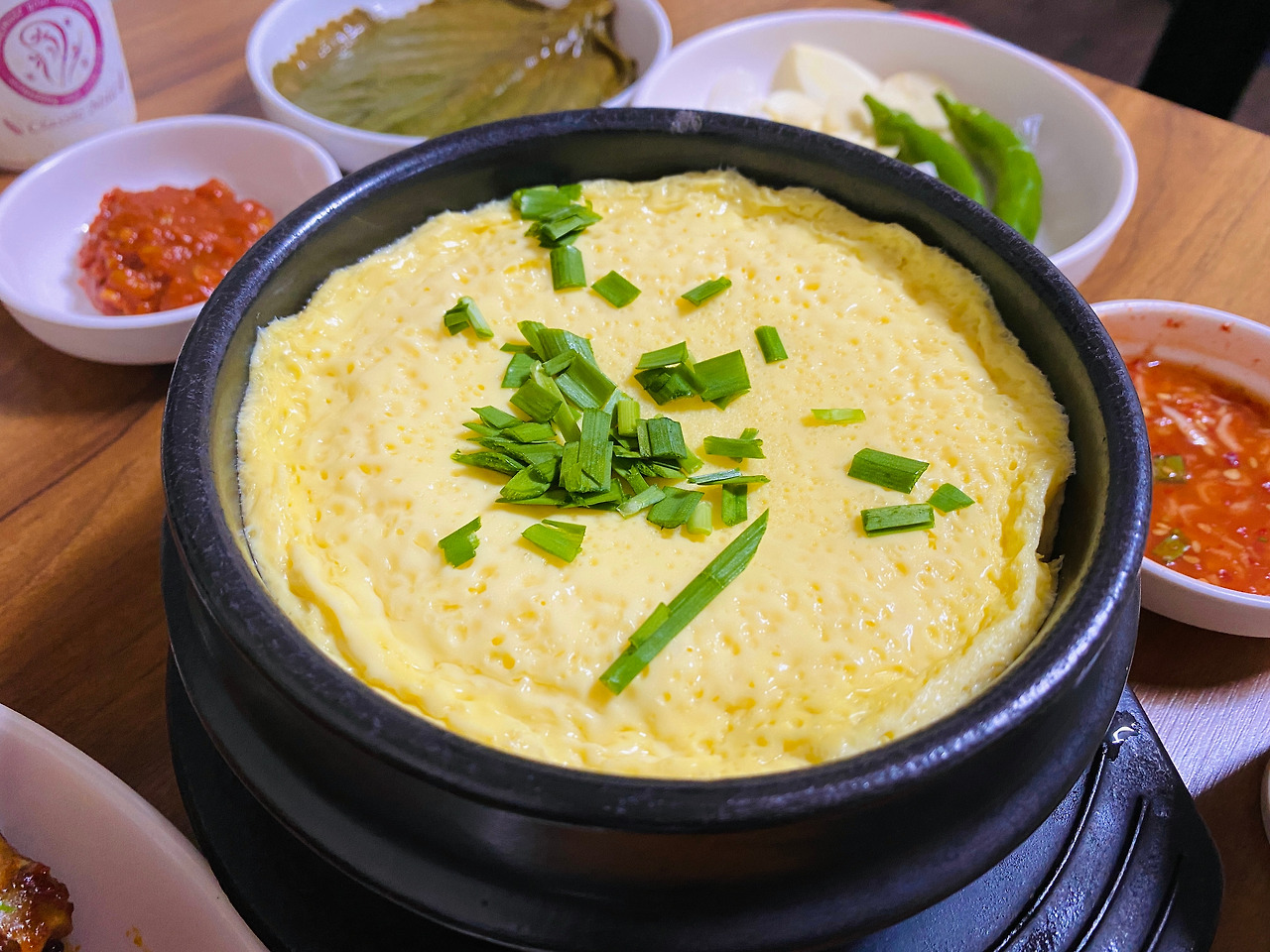계란찜을 빠트렸구나. '옥천매운족발'의 계란찜. 개인적으로 필자가 좋아하는 스타일의 계란찜이다. 폭탄보단 탱글탱글하면서도 부드러운 계란찜. 숟가락이 비집고 들어가는 느낌이 있는 탄력 있는 계란찜을 좋아한다.