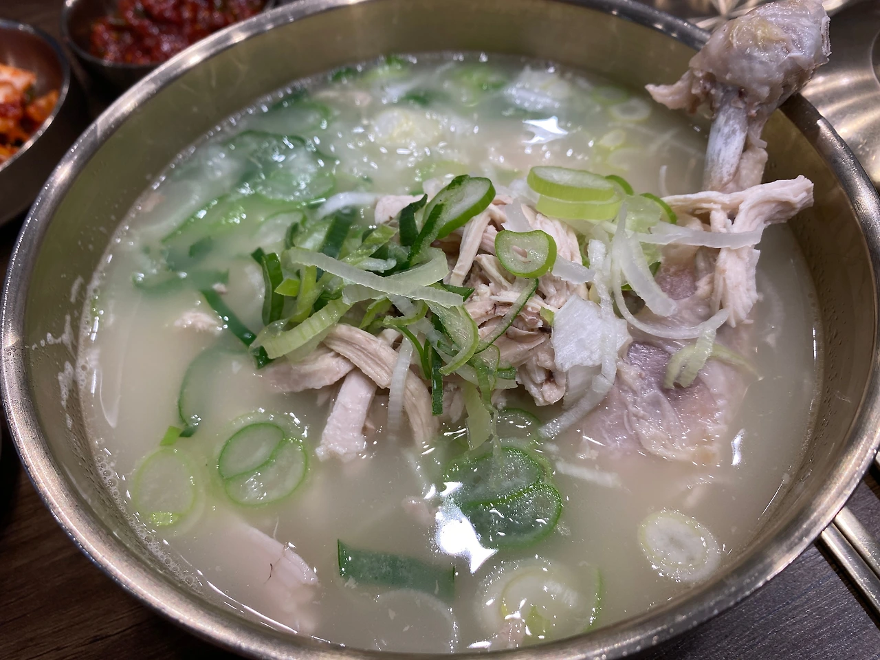 - 맑고 진한 육수 스타일의 닭곰탕, 닭다리를 중심으로 한 메뉴가 있어서 그런지, 일반 닭곰탕의 경우 닭가슴살의 비중이 매우 높다.