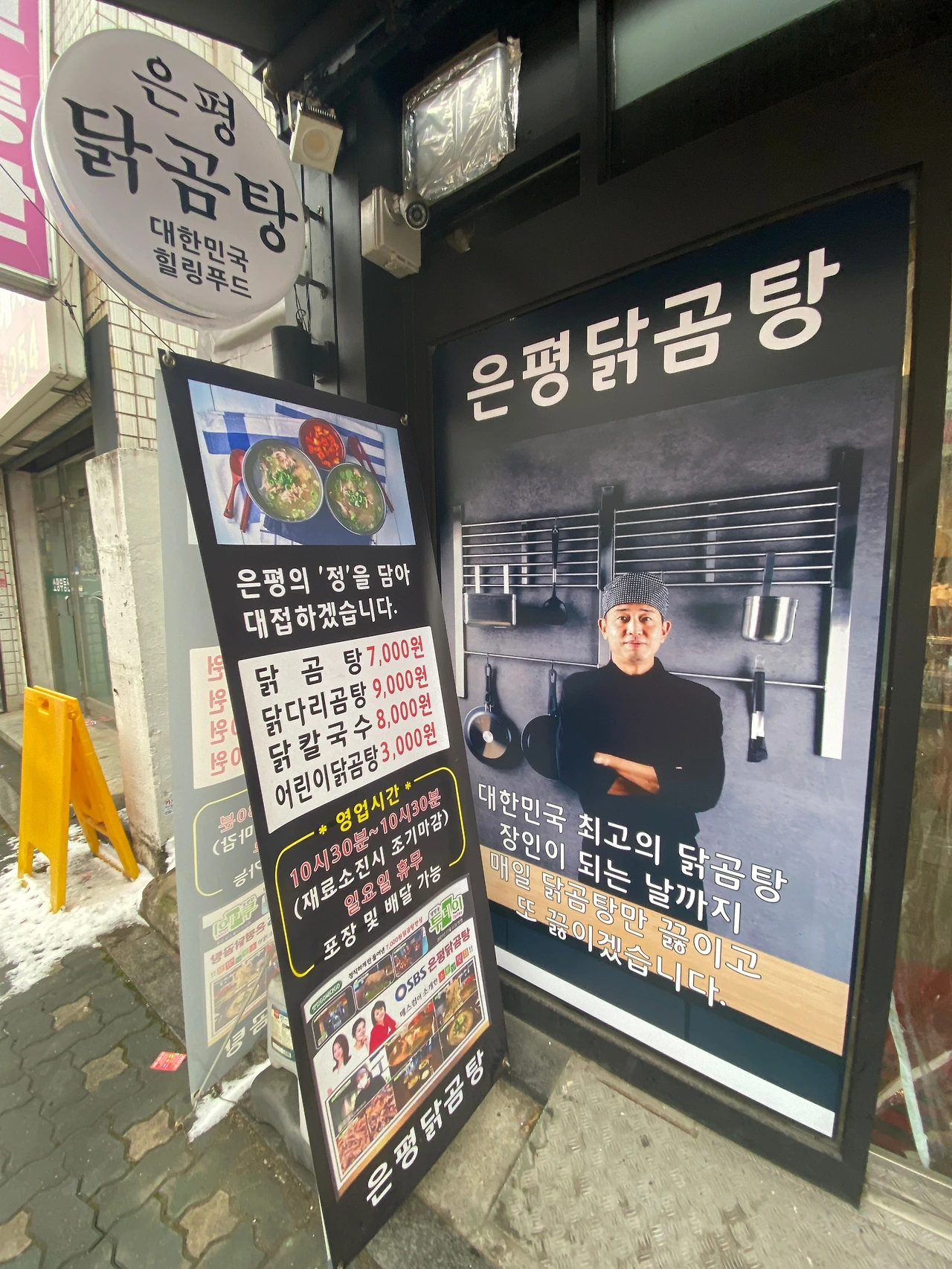 역촌동에서 웨이팅이라니 꽤나 어색하다. 아마 점심시간이라 그런 듯한데, 꽤나 입지를 다진 곳인 듯하다. 입구에선 사장님의 닭곰탕에 대한 프라이드를 잠시 느낄 수 있다. 역시 닭칼국수도 함께 하는구나. 닭곰탕 집에 닭칼국수가 없음 뭔가 서운하다.