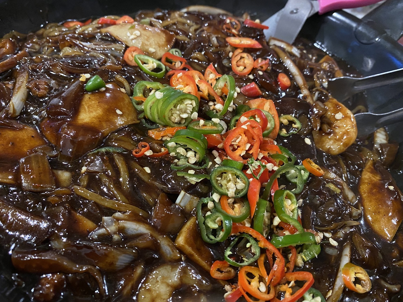 홍고추, 청고추가 쫑쫑 썰린 게 인상 깊기도 했고, BEST라는 메뉴판의 표시에 주문했는데, 아 이놈. 정말 생각지도 못한 복병이다. 생각보다 얄쌍한 면과 함께 걸쭉하면서 매콤 칼칼한 짜장 소스가 제대로 면치기 해 들어온다.