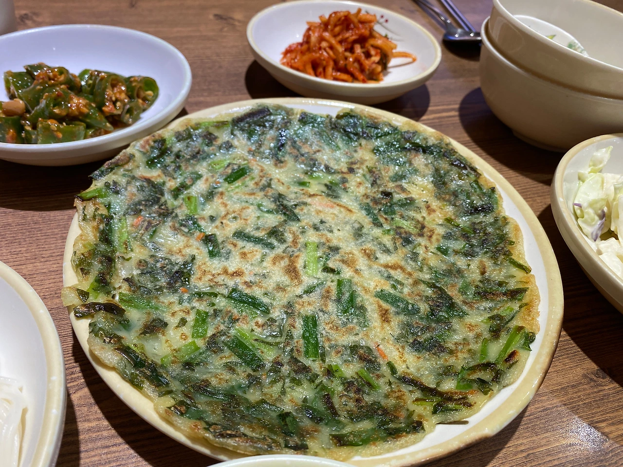미나리부추전, 잘게 썬 부추와 함께 미나리가 약간 들어간 듯한데, 물회 시식 이후, 급 활약할 녀석이다. (전은 리필 불가하며 추가 시 2,000원)