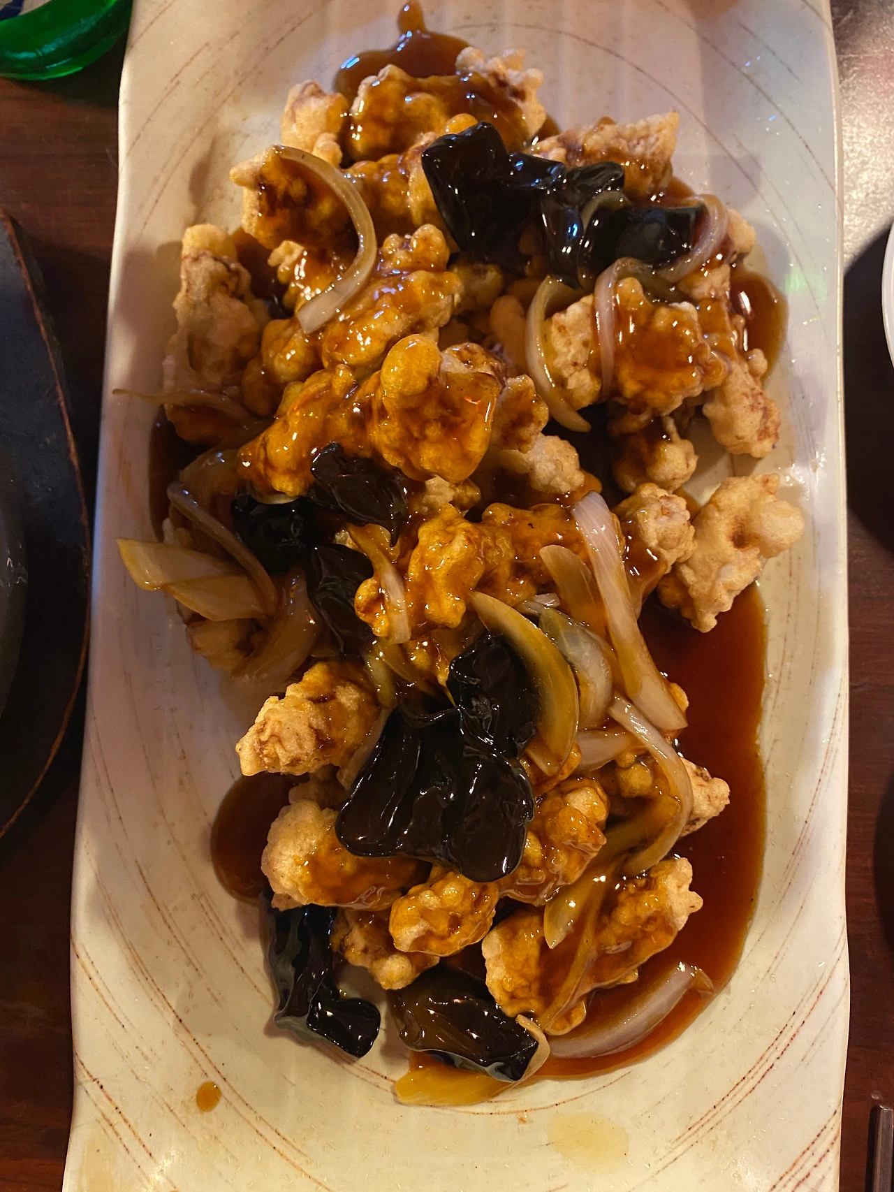 탕수육도 합격이다. 소스에 들어간 재료는 목이버섯과 양파뿐인데, 맛있다. 튀김옷은 소스에 적셔져 한층 더 부드러운데, 쫜쫜하니 술안주로 참 제격이다. 가끔 힘없는 배달 중국집의 탕수육보다 양은 적지만, 뭔가 알찬 녀석.