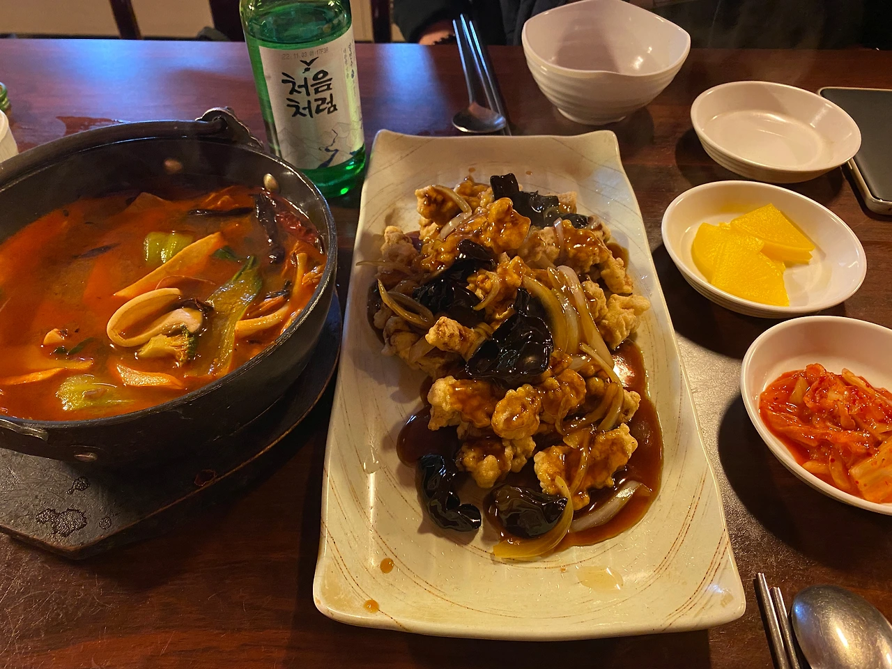 본격적인 중식에 술 한 잔이 그렇게 시작되었다. 날이 추운 날 기름진 중식에 도수가 높은 술은 속을 데우기엔 최적의 조합인데.