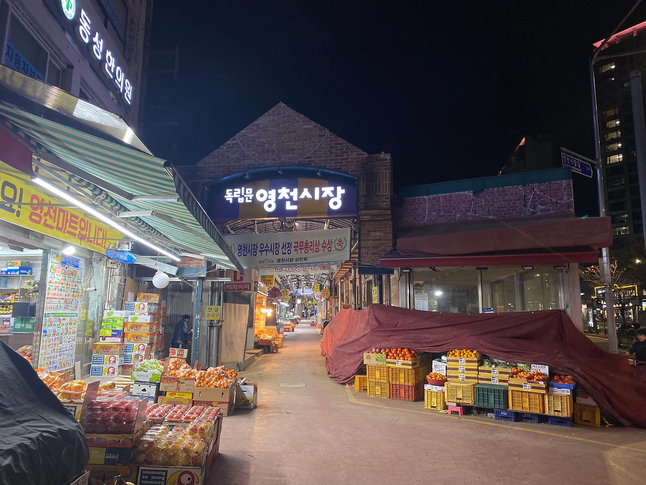 돌아가는 길, 인근으로는 영천시장이 위치해 있었으나 아쉽게도 문을 닫는 시간. 서대문역과 독립문역 사이에 위치해 있으니, 시장 근처로 마실하기에도 좋을 것이다.